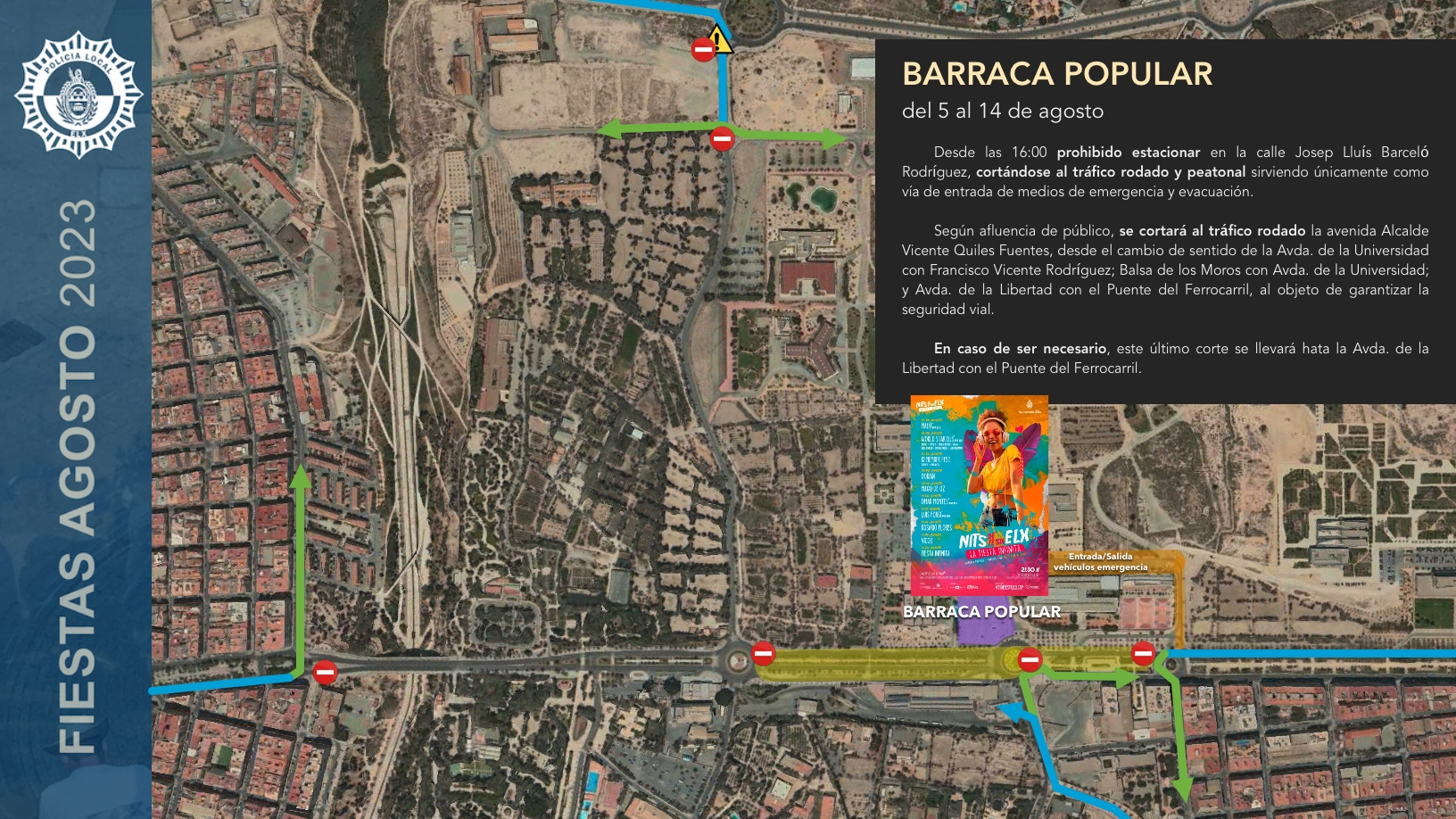 Estos son los cortes y desvíos previstos durante las noches de funcionamiento de la #Barraca Popular