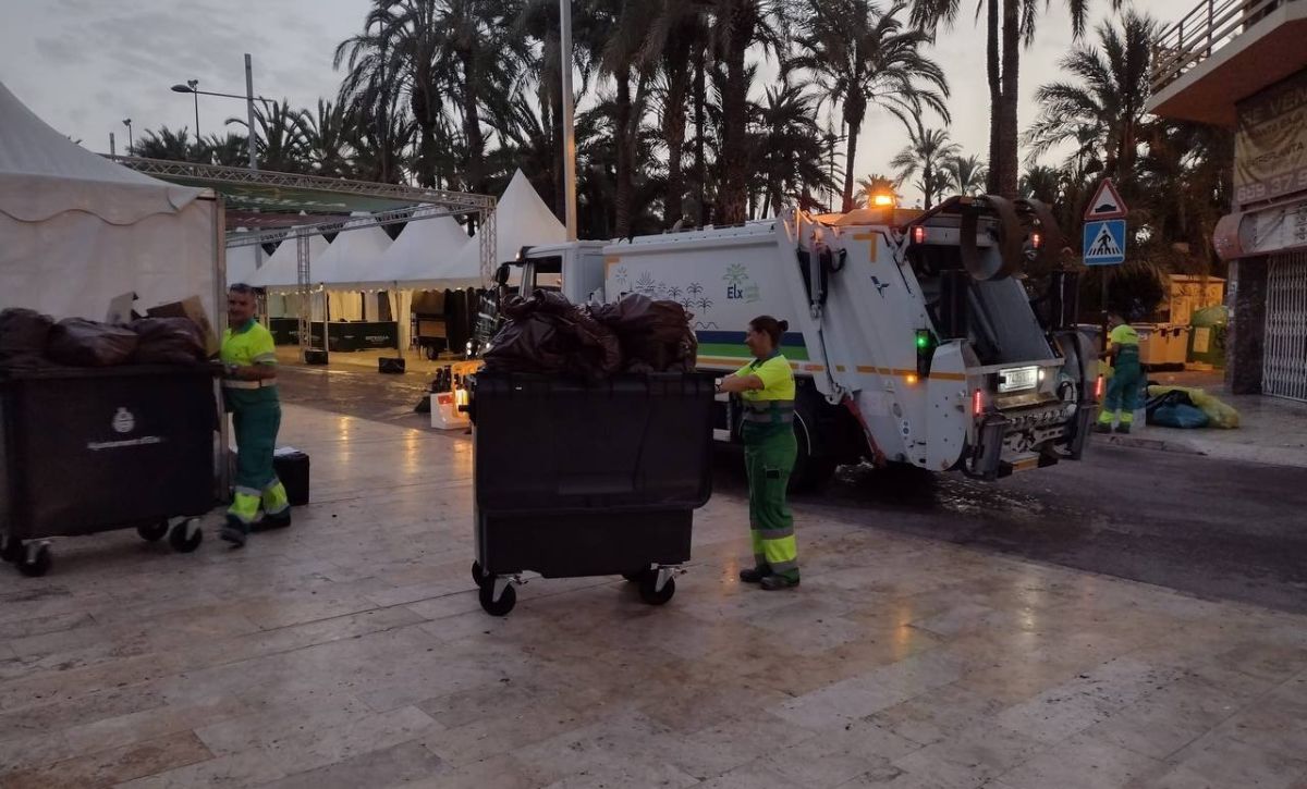 El dispositivo especial también incluyó la redistribución horaria de los servicios de recogida y limpieza ordinaria y extraordinaria adaptado al programa de las fiestas de cada uno de los días (Nit de l’Albà, Misteri, …).
