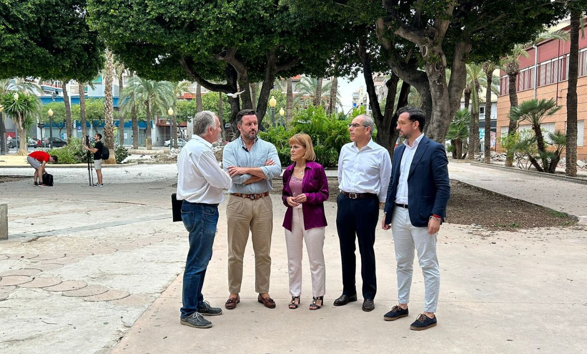 El Alcalde de Elche, Pablo Ruz, acompañado por el vicealcalde Francisco Soler, la tercera teniente de Alcalde, Aurora Rodil y el segundo teniente de Alcalde y concejal de servicios públicos, Claudio Guilabert han acudido al inicio de las obras de remodelación del Paseo Germanías.