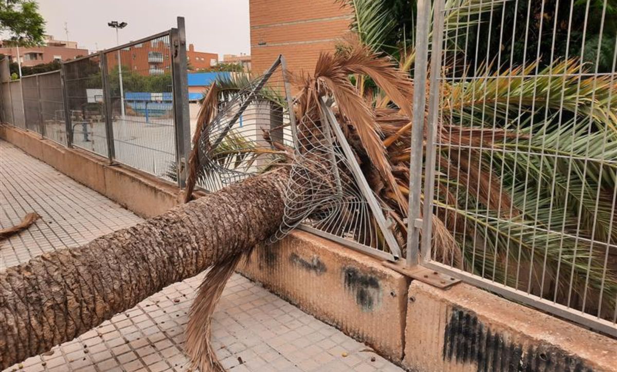 Desde primera hora de la mañana, los agentes de la Policía Local acudieron ante la llamada de vecinos por diversos desperfectos en el mobiliario urbano y en el vallado del IES Victoria Kent. También por la caída de la pared de una nave abandonada en la partida de Derramador, la caída de cascotes en vía pública en la plaza Eres de Santa Llúcia. Además de la caída de parte de un tejado en el patio de luces en la calle Arturo Salvetti Pardo, de la farola de fachada dentro de un balcón en la calle Muhammad al-Shafra o la tela de la bandera de España del Paseo de la Estación.