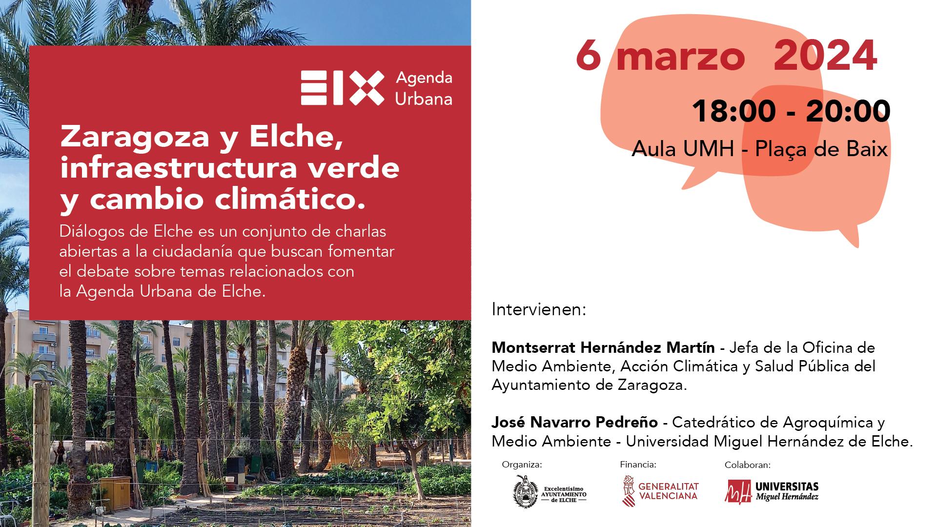 El próximo 6 de marzo, en la sede de le UMH en la Plaça de Baix, tendrá lugar el cuarto «Diálogo de Elche», que versará sobre la infraestructura verde y el cambio climático; acercándonos a la experiencia de Zaragoza en relación con la iniciativa del Bosque de los Zaragozanos.