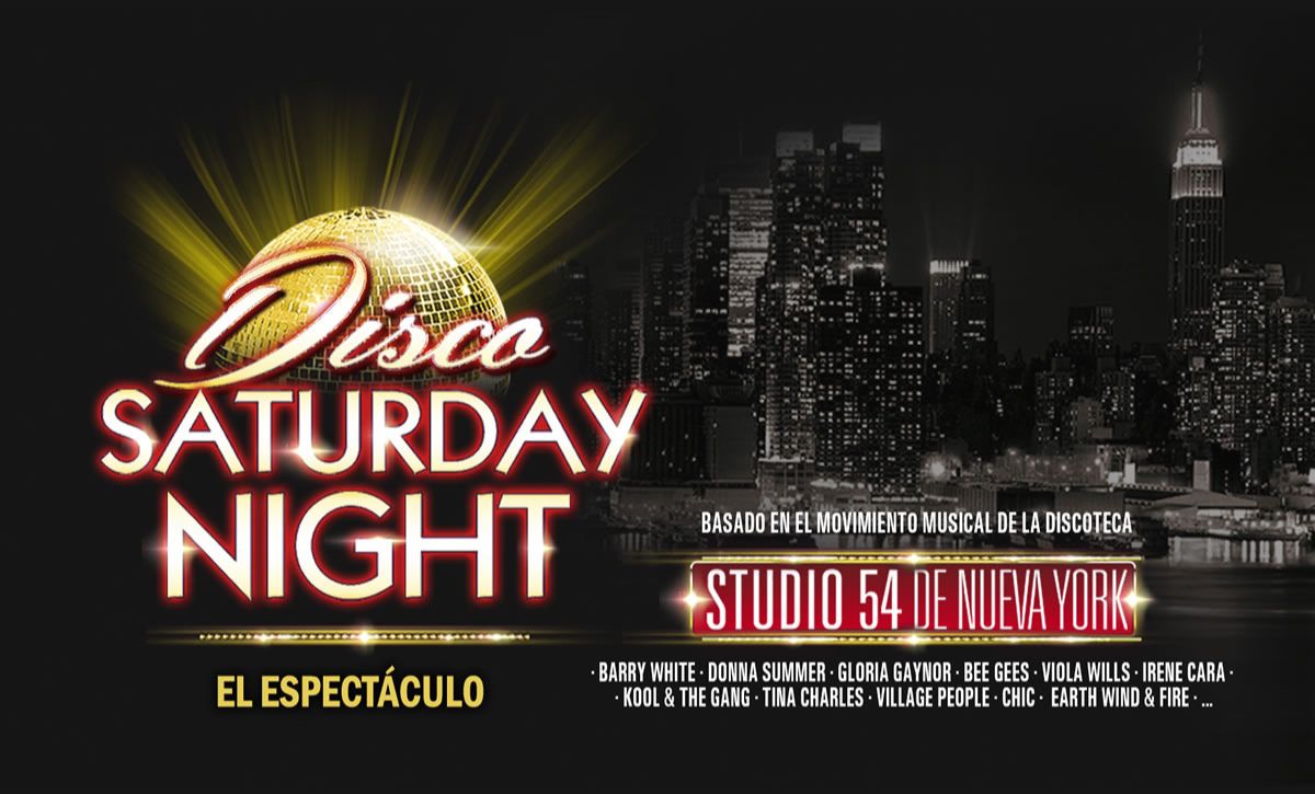 Información: El mayor espectáculo con los nº 1 de la música disco en todo el mundo. Una megaproducción basada en el movimiento musical de la discoteca STUDIO 54 de Nueva York, a través del programa de radio SATURDAY NIGHT Disco de la emisora más importante de la ciudad de los rascacielos, y donde cada noche nos deleita con los hits más influyentes que revolucionaron las pistas de baile. Un apasionante espectáculo con las canciones que cambiaron las tendencias, los estilos y las modas en todo el globo. Desde Barry White, Donna Summer, Gloria Gaynor, Tina Charles o Bee Gees, hasta Kool & The Gang, Village People, Earth Wind & Fire…