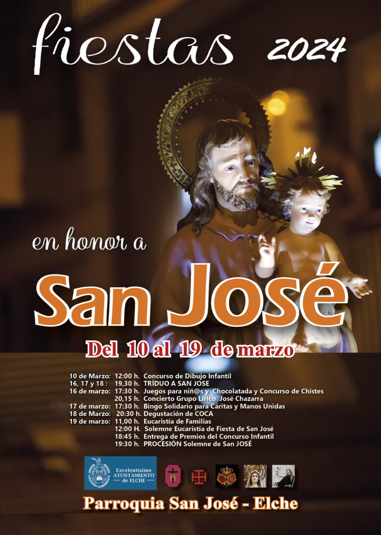 El barrio de El Plà de Sant Josep empieza a preparar las fiestas en honor a San José que se celebrarán desde el domingo 10 de marzo de 2024 con un concurso de dibujo infantil hasta el martes 19 de marzo, día de San José, con la Solemne Procesión con la participación de 400 personas. Los eventos continuarán el sábado 16 con juegos infantiles, concurso de chistes, chocolate con suizos, concierto del Grupo Lírico José Chazarra, el domingo 17 un bingo solidario para Cáritas y Manos Unidas y el lunes 18 de marzo una degustación de coca y la Solemne Eucaristía del Triduo. Además, el miércoles 20, posterior a las fiestas, se realizará una Eucaristía por los difuntos del barrio.