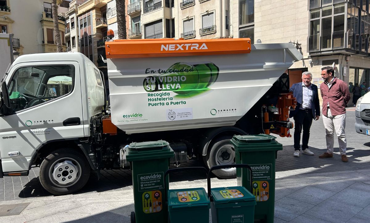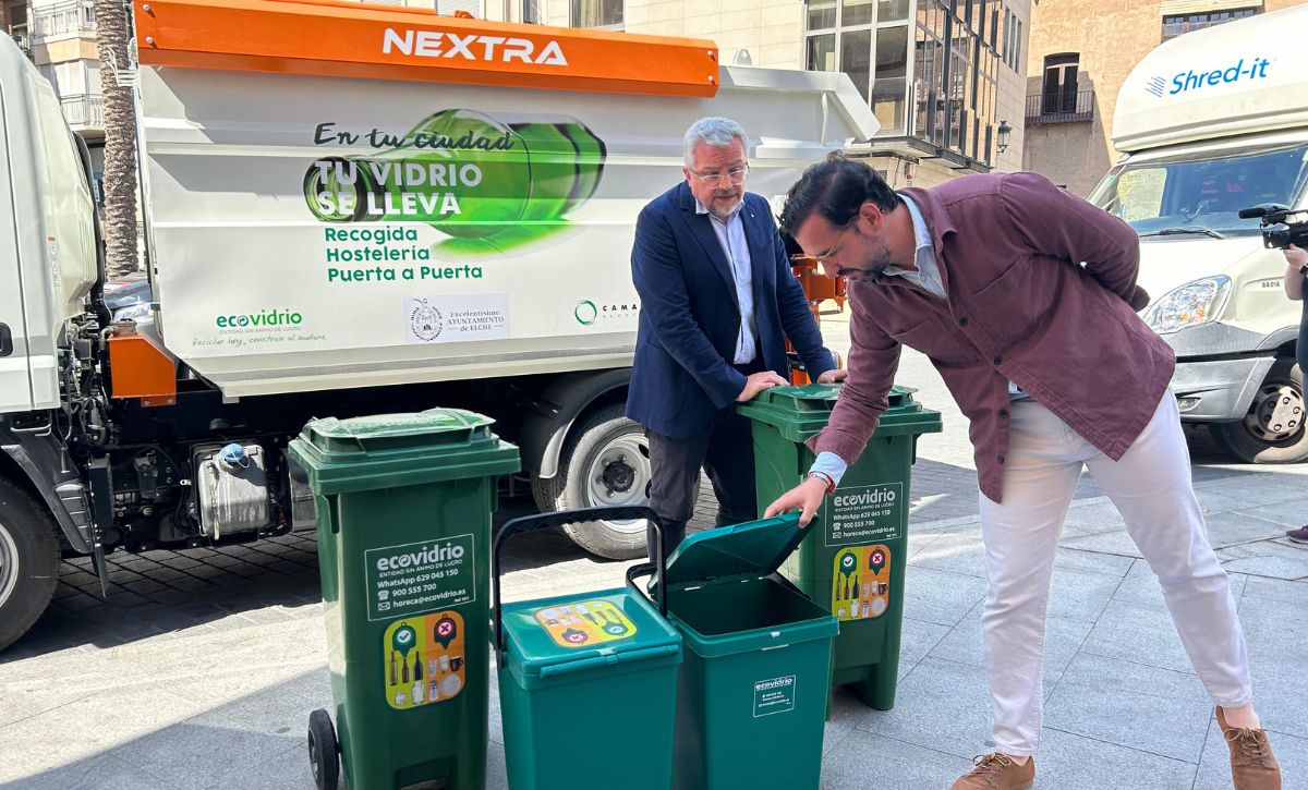 El Ayuntamiento de Elche y Ecovidrio han presentado la nueva campaña de reciclaje de vidrio ‘Puerta a Puerta” para la hostelería del municipio que entrará en funcionamiento este mismo sábado, 1 de junio.