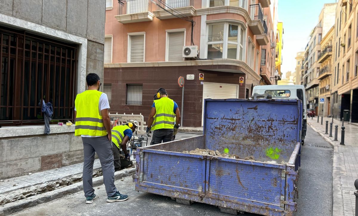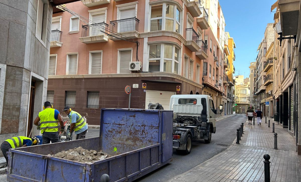 La primera de las actuaciones que se está llevando a cabo, por parte de la empresa Aigües d’Elx, es el saneamiento de toda la conducción de agua potable a lo largo de 36 metros de la calle. Una renovación de las tuberías de fibrocemento que se sustituirán por conducciones de fundición dúctil. La actuación se prolongará durante dos semanas y se realiza por un importe de 15.000 euros.