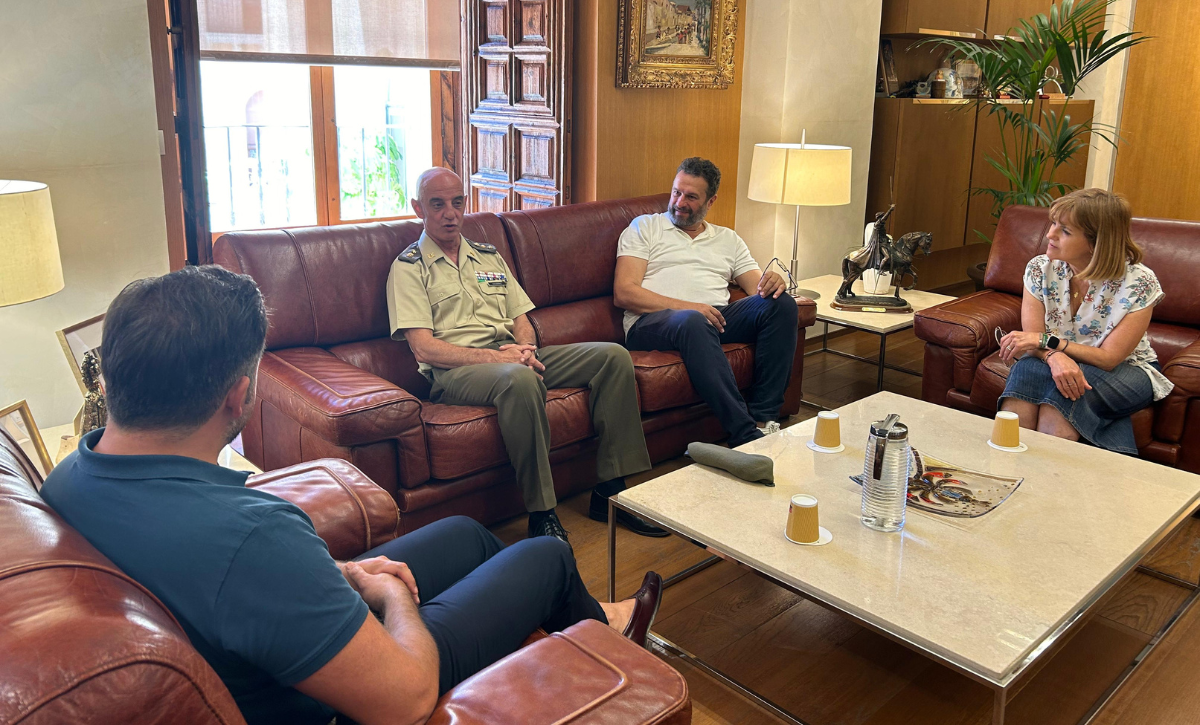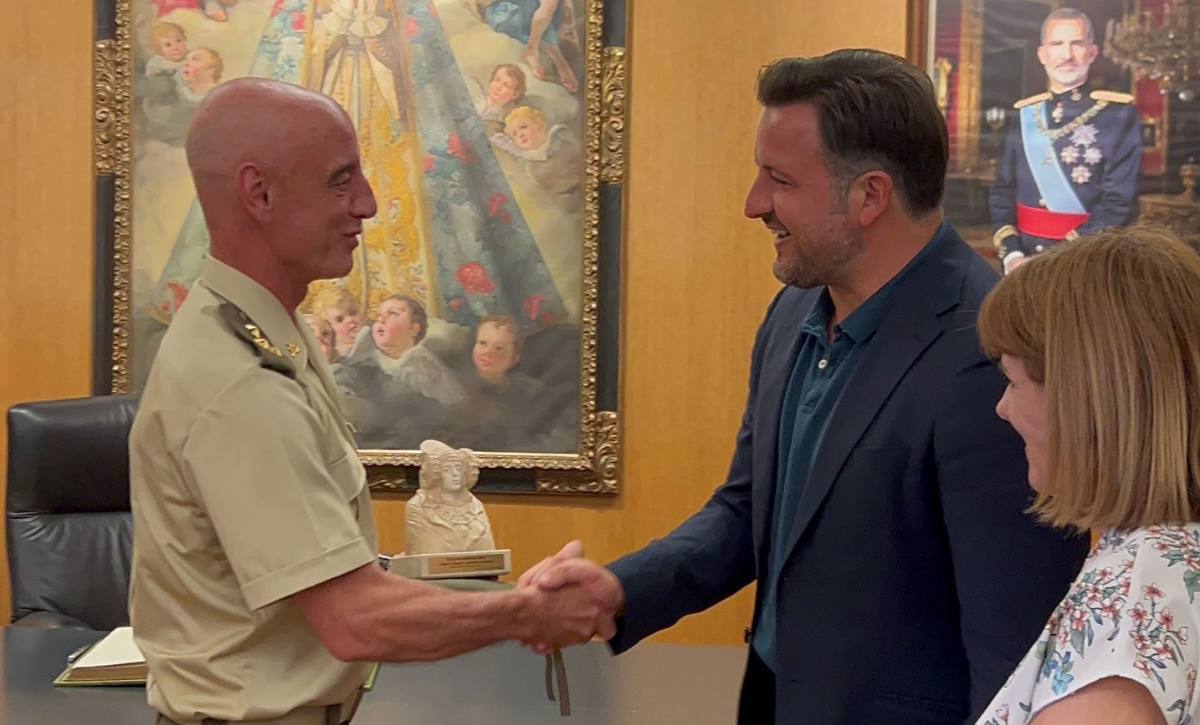 El alcalde Pablo Ruz; la edil de Infancia, Familia y Mayores y 3ª teniente de alcalde, Aurora Rodil y el edil de Deportes y Medio Ambiente, José Antonio Román, han recibido al nuevo Subdelegado de Defensa, el coronel Juan Navarro, quien ha recibido un busto de la Dama de ELche.