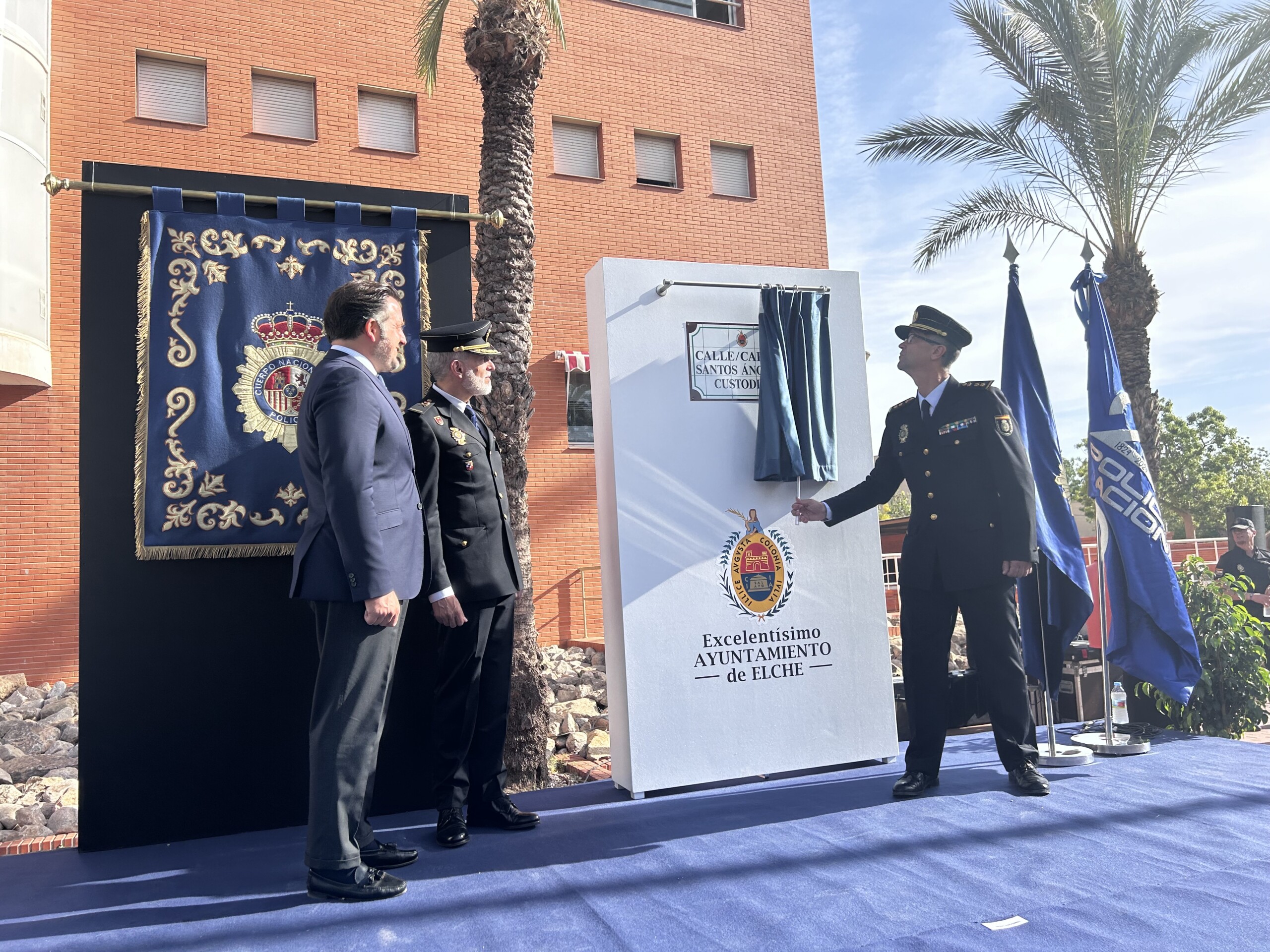 El Ayuntamiento de Elche ha realizado un acto para homenajear de forma permanente en el callejero municipal a la labor de la Policía Nacional con la designación de dos calles de Elche en su honor, ambas lindantes con el edificio de Comisaría. De esta forma, la calle Che Guevara pasa a denominarse calle Santos Ángeles Custodios, patrón del Cuerpo de la Policía Nacional, mientras que la calle Avet se nombra calle Policía Nacional.