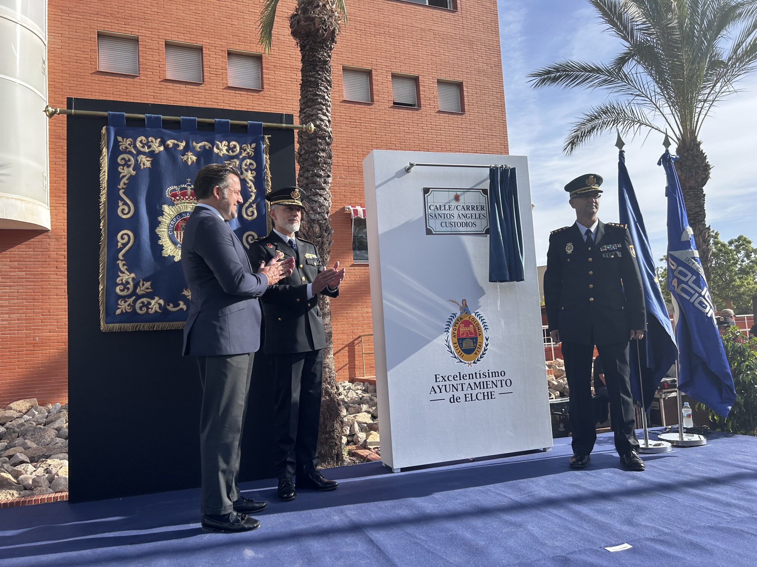 Ruz ha indicado que desde hoy el patrón de Policía Nacional “tiene un espacio en nuestro callejero y para testimoniar aún más si cabe el cariño hacía el Cuerpo de la Policía Nacional, este vial que acoge este acto llevará para siempre el nombre de vuestra institución”. Además, la designación de estas calles “se enmarca dentro de la celebración de vuestro bicentenario. Dos siglos contemplan vuestra grandeza. 100 de ellos se atan a la historia de Elche y se enraízan en el acervo ilicitano”.