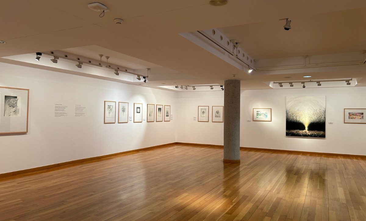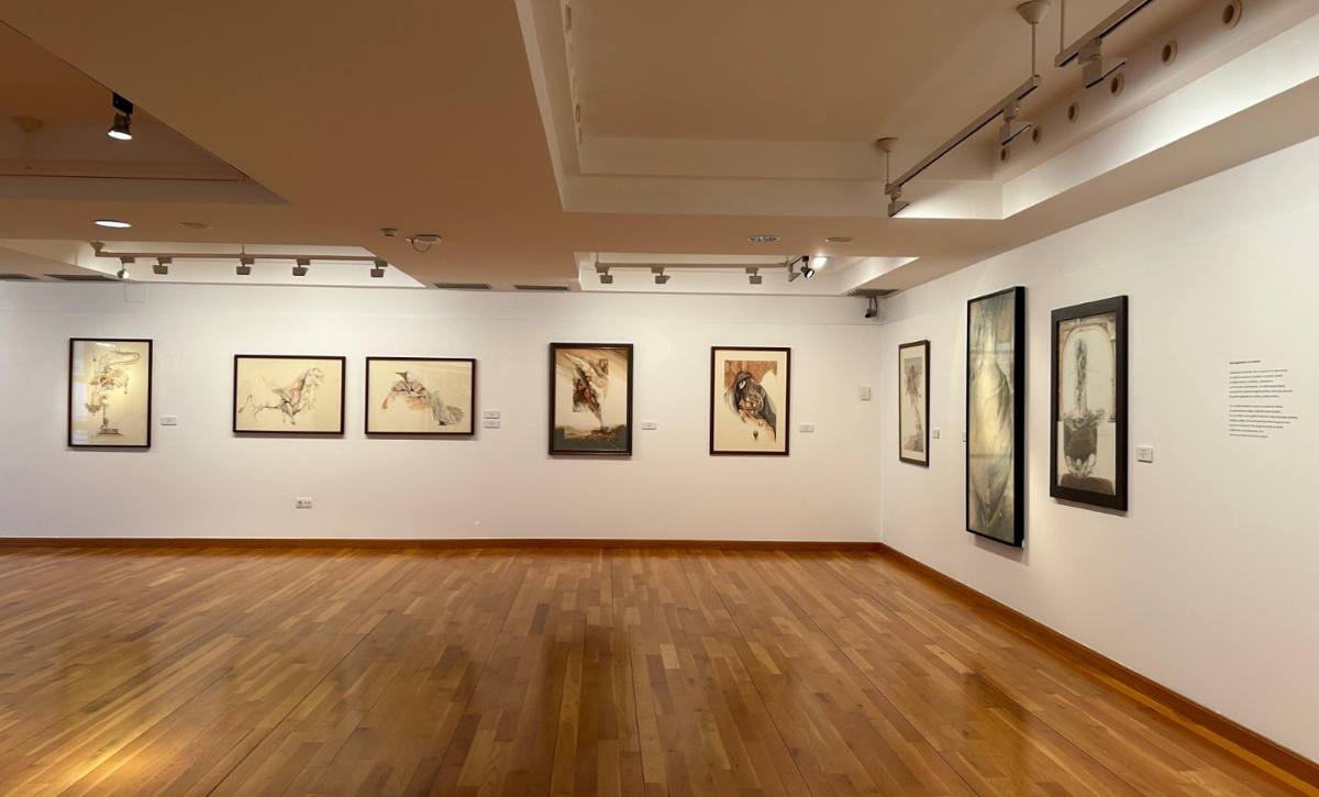 La comisaria de la exposición, María Gazabat, técnica de Colecciones del Mugab, ha explicado que las obras se distribuyen en tres ámbitos secuenciales ejecutadas con grafito, tinta china o témpera acrílica entre 1966 y 2021.