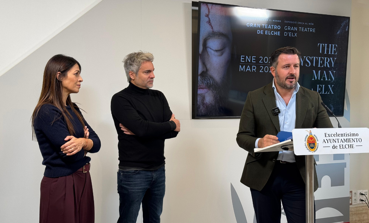El acalde, Pablo Ruz ha presentado la llegada de ‘The Mystery Man’ a Elche, una exposición internacional que cuenta la historia de Jesús de Nazaret a través del misterio de la Sábana Santa y que estará disponible en la Sala de Exposiciones del Gran Teatro del 24 de enero al 24 de marzo.