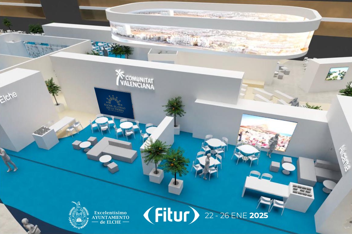 En esta nueva edición, Elche contará con un stand el doble de grande que alcanza los 68 metros cuadrados para mostrar a los asistentes a la feria toda la oferta turística de la ciudad. Ruiz ha señalado que, además, en esta edición “se suma que disponemos de un espacio con un diseño más moderno e innovador gracias a la propuesta de Turisme Comunitat Valenciana que tiene el objetivo de profesionalizar aún más si cabe la presencia de la comunidad en Fitur”.