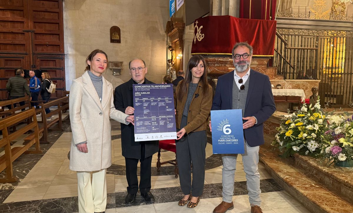 La edil de Cultura, Irene Ruiz y el Mestre de Capella del Misteri d’Elx, Francisco Javier Gonzálvez, han presentado esta mañana, del miércoles 26 de febrero, la amplia programación de conciertos que se realizarán en la basílica de Santa María a lo largo de este 2025 con motivo de la celebración del Año Jubilar por el 75 aniversario del Dogma de la Asunción