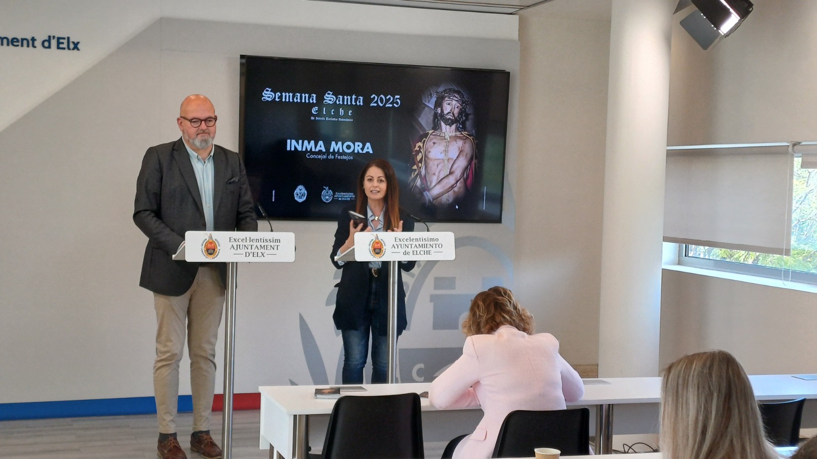 La concejalía de Festejos ha presentado el programa de la Semana Santa de Elche 2025. La edil del área, Inma Mora, junto al presidente de la Junta Mayor de Cofradías y Hermandades, Joaquín Martínez, han informado que se van a repartir este año 26.000 ejemplares a partir de este jueves 3 de abril en la Oficina de Turismo y desde el miércoles 9 de abril en la caseta de alquiler de sillas en la Plaza de Baix.