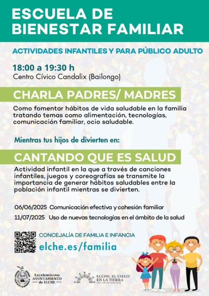 El Ayuntamiento de Elche, a través de la Concejalía de Infancia, Familia y Mayores, ha organizado una serie de actividades educativas con el objetivo de promocionar hábitos saludables a lo largo de todo el año y dirigidas a las familias del municipio.