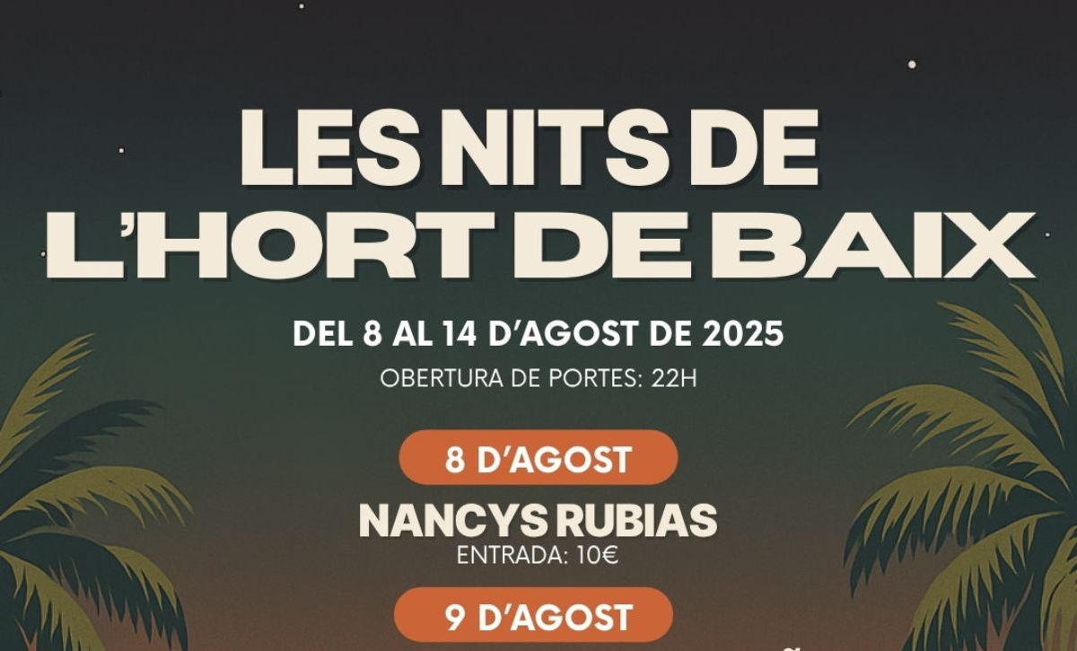 El Hort de Baix abrirá sus puertas cada noche a las 22.00 horas, excepto el 13 de agosto, que con motivo de la Nit de l’Albà, la apertura será a las 00.30 horas.