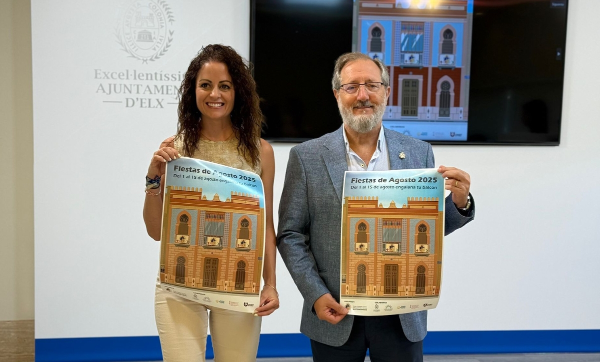 La edil de Festejos, Inma Mora, y el presidente de la Asociación Festera de Moros y Cristianos, Julián Fernández, han invitado a todos los ilicitanos a engalanar sus balcones y edificios con motivo de las fiestas patronales de la ciudad, desde el día 1 de agosto hasta el día 15, cuando finalicen las fiestas.