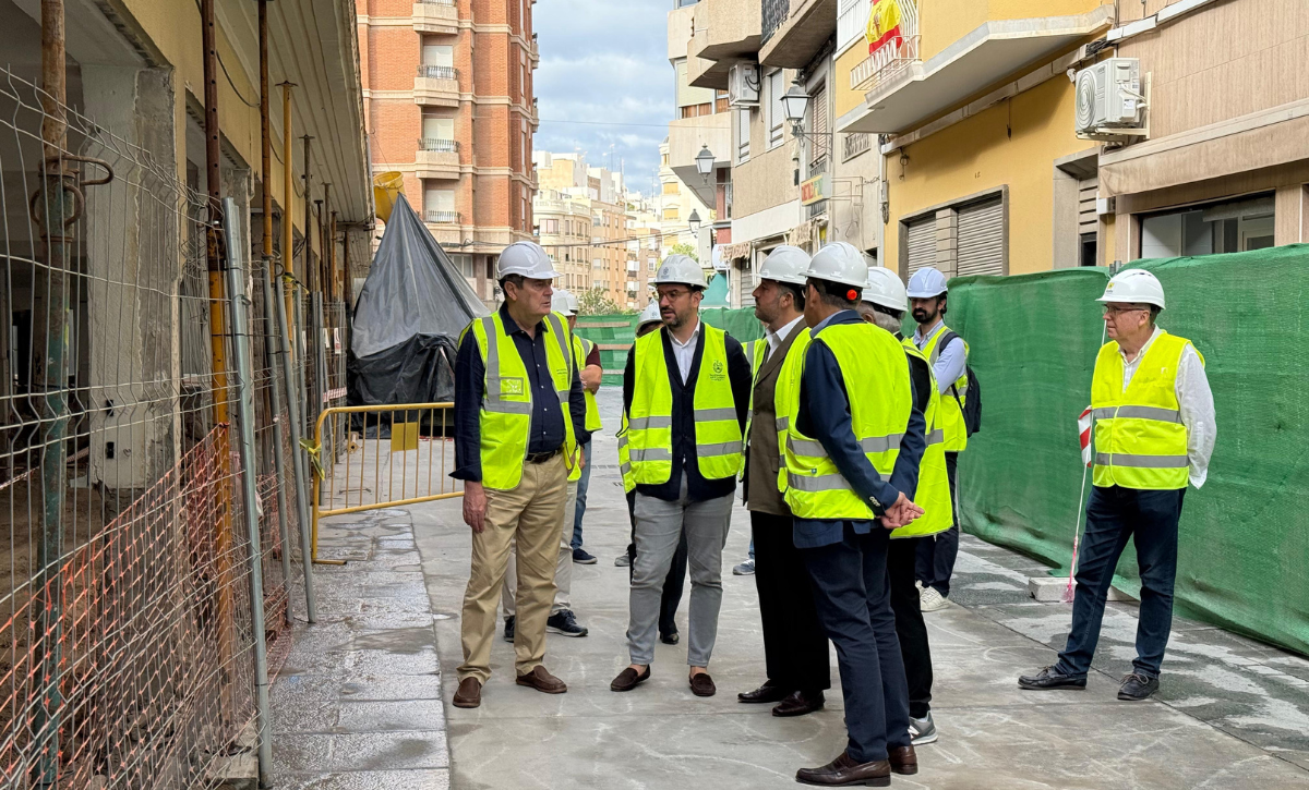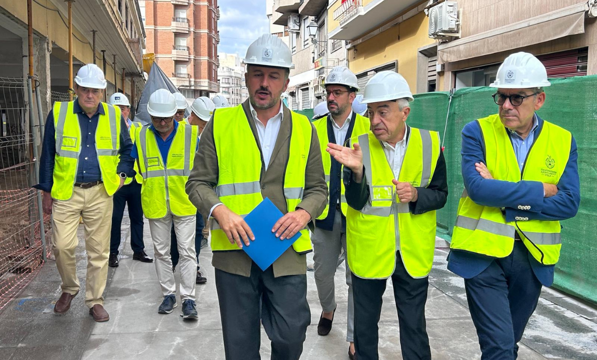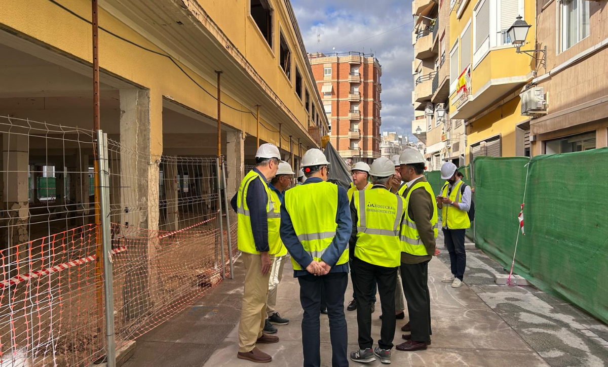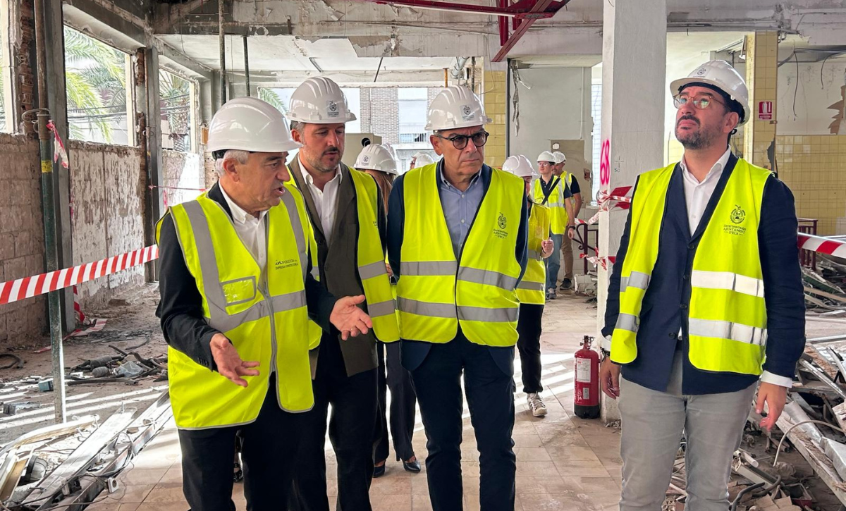 El alcalde Pablo Ruz ha visitado esta mañana el estado de las obras acompañado del edil de Estrategia Municipal, Francisco Soler; el edil de Espacios Públicos, Claudio Guilabert y la edil de Mercados, Loli Serna junto al arquitecto responsable José María Tomás Llavador.