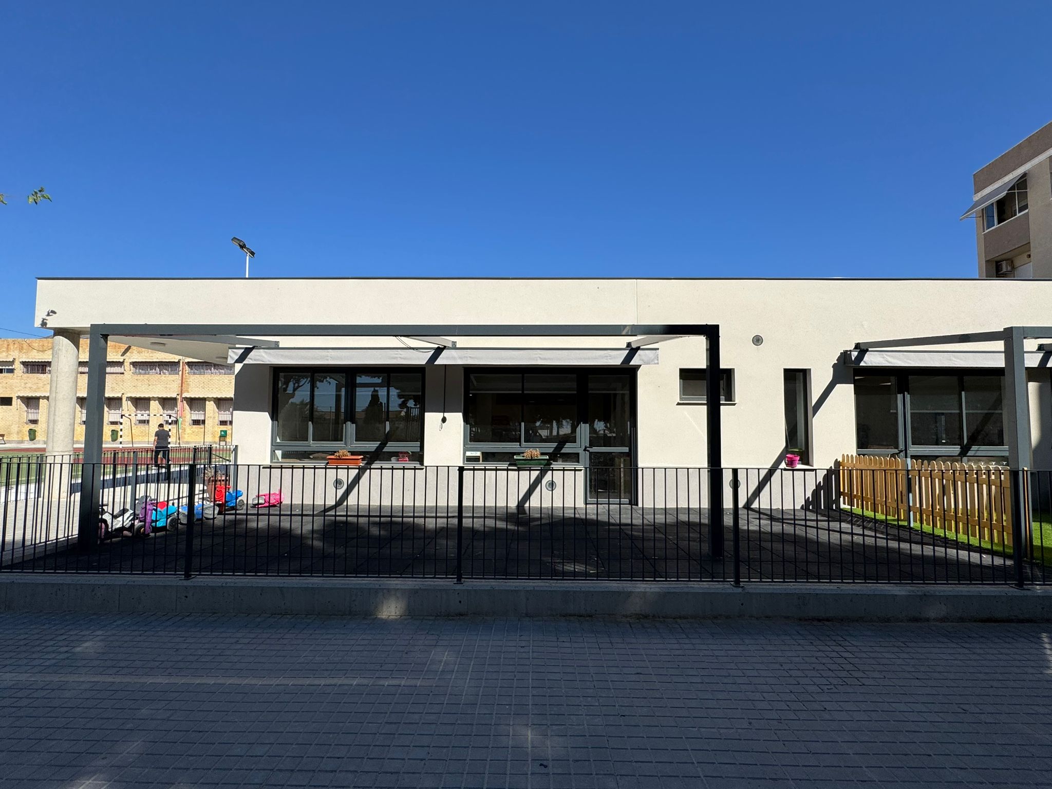 Las actuaciones llevadas a cabo durante el periodo estival han incluido la reforma de pistas deportivas en casi una veintena de colegios, la instalación de toldos palilleros en el CEIP La Paz de Torrellano, la colocación de pérgolas y la renovación de pintura en distintos centros. En el CEIP Las Bayas se ha llevado a cabo la reforma de la pista deportiva y de todo su entorno.
