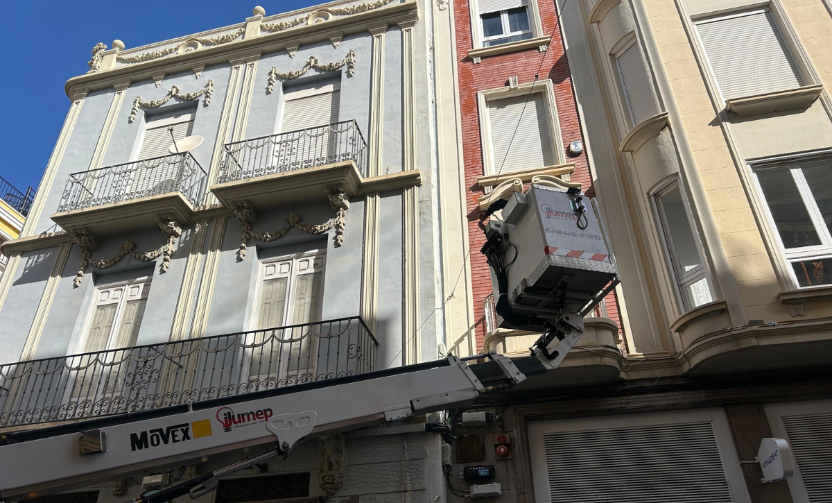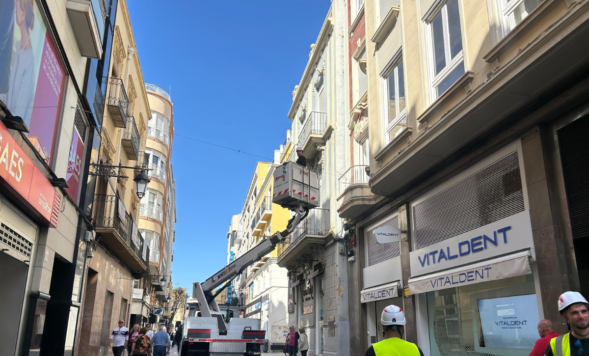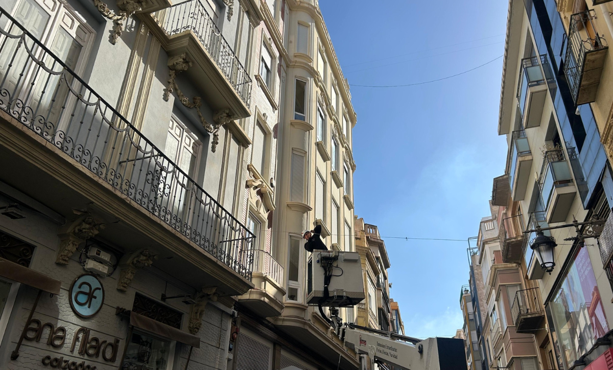 El Ayuntamiento de Elche ha iniciado este lunes los trabajos para la instalación de toldos vela en distintas calles comerciales del centro histórico de la ciudad, una actuación incluida en el plan de sombra con el objetivo de mejorar en confort térmico durante los meses más calurosos del año y a la vez, dinamizar la actividad económica.