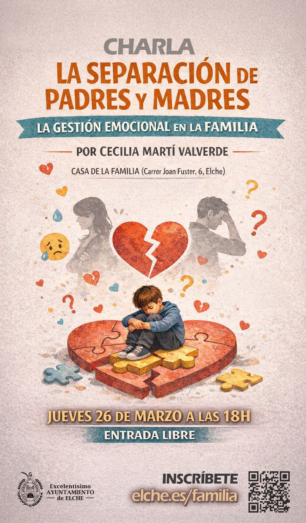 Casa de la Familia Carrer Joan Fuster, 6, Elche, Alicante, SpainEl Ayuntamiento de Elche organiza una charla dirigida a familias bajo el título **“La separación de padres y madres: la gestión emocional en la familia”**, un espacio de reflexión y […]