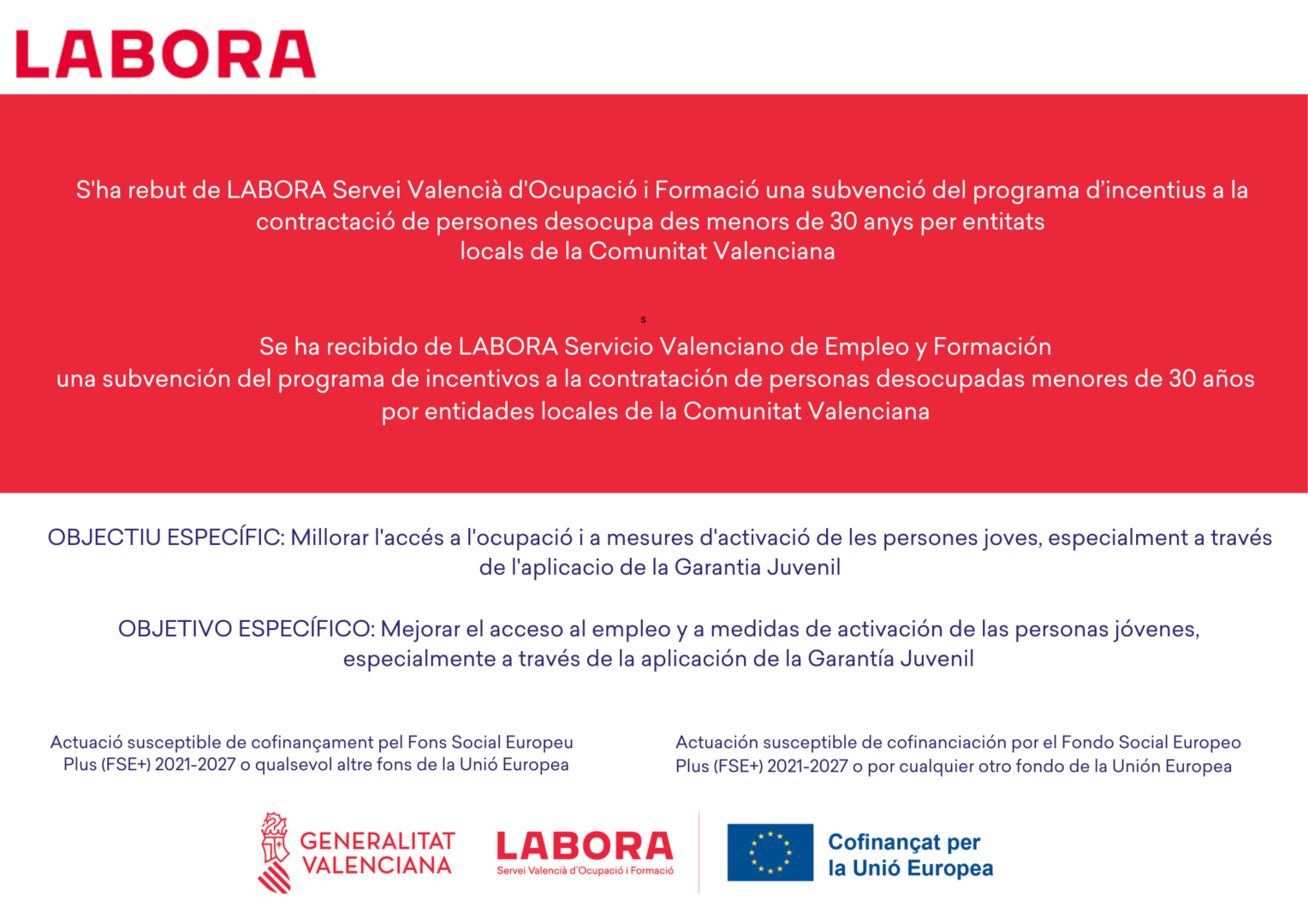 Para más información consultar web: labora.gva.es