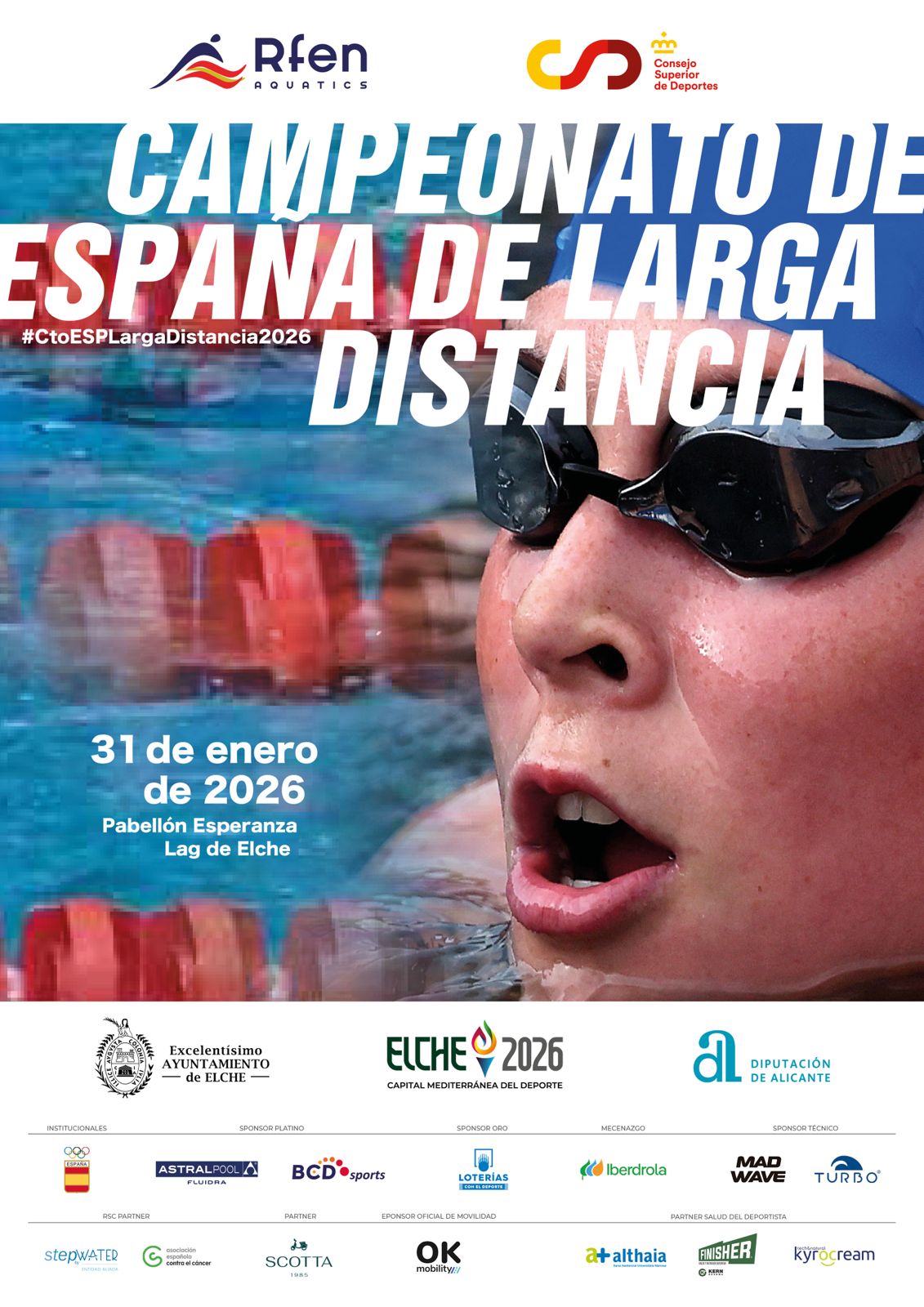 La nadadora local ÁNGELA MARTÍNEZ (2004/ KZM) disputará por primera ocasión un Nacional ante su público. La olímpica ilicitana partirá entre las favoritas al oro en la prueba de los 5000 metros. Su principal rival será la medallista mundial de aguas abiertas, María de Valdés, que acude a Elx a intentar defender el título nacional, logrado el año pasado en Oviedo. En la cita asturiana, Ángela se hizo con el subcampeonato, firmando un nuevo récord autonómico de la distancia, con un registro de 57:32.08.