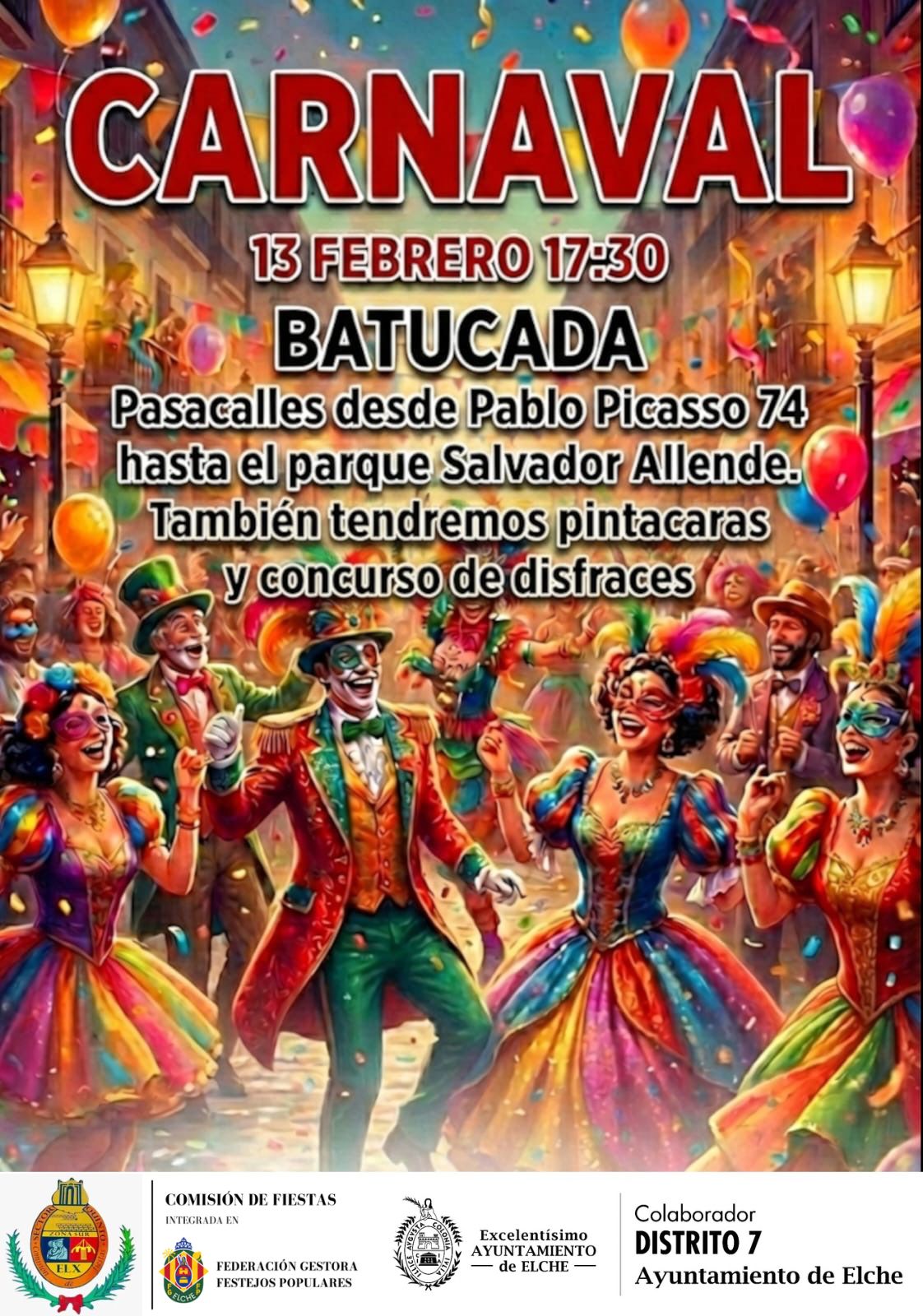 « Todos los Eventos Este evento ha pasado. CARNAVAL EN SECTOR V 13 febrero 2026 - 17:30 al 20:30 « Exposición permanente “Elche, de la Prehistoria a la Tardoantigüedad” CURSOS GRATUITOS RCP Y USO DE DESFIBRILADORES » ORGANIZA: COMSIÓN DE FIESTAS SECTOR V COLABORA: DISTRITO 7 Añadir al calendario Google Calendar iCalendar Outlook 365 Outlook Live Detalles Fecha: 13 febrero 2026 Hora: 17:30 al 20:30 Categorías del Evento: Distrito 7, Distritos, Evento, Infantíl