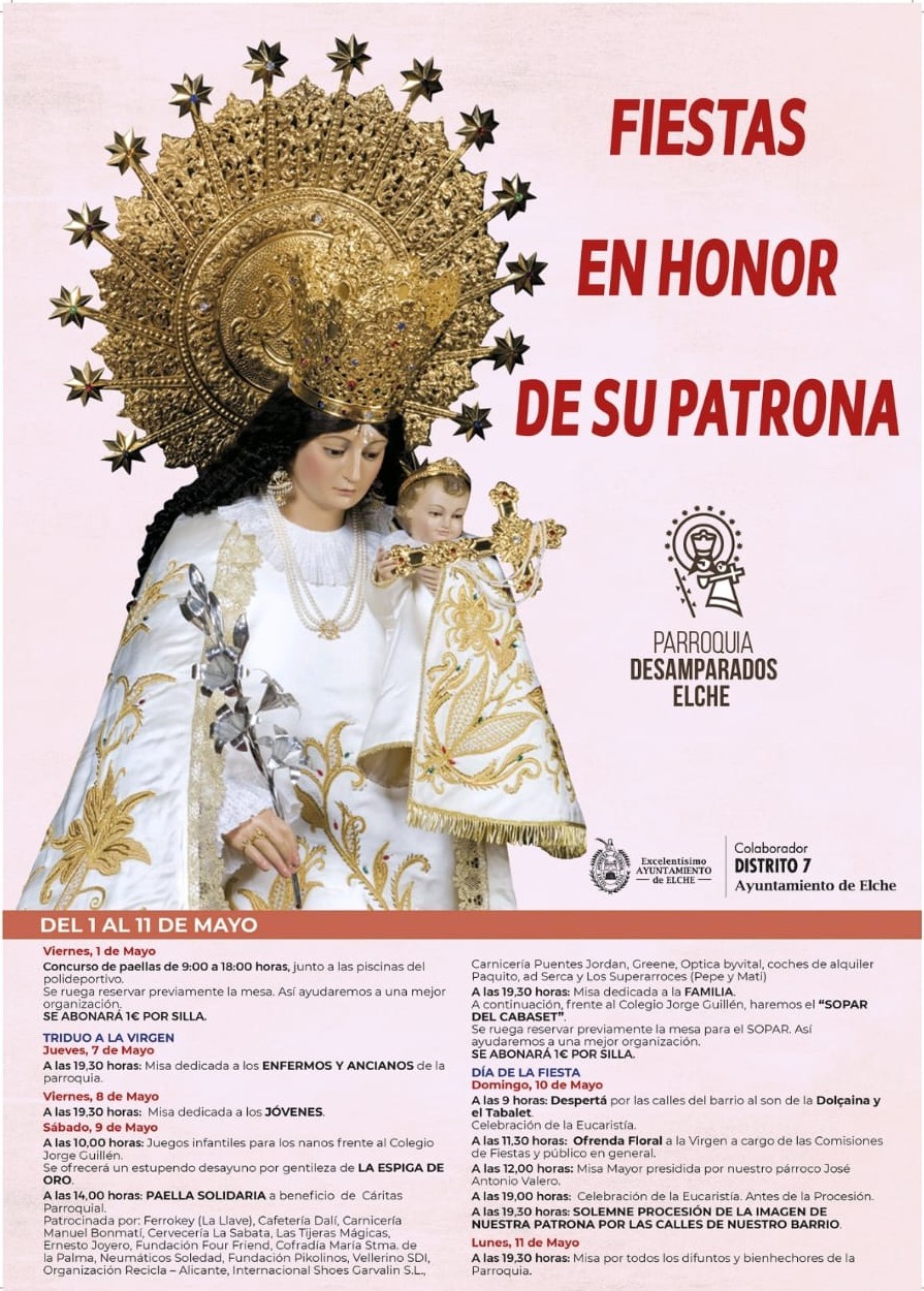 « Todos los Eventos FIESTAS VIRGEN DESAMPARADOS 1 mayo 2026 al 11 mayo 2026 « ADI Coloquios · Desarrollo Infantil CONVIVENCIA VECINAL: COMIDA PRIMAVERA » ORGANIZA: PARROQUIA DESAMPARADOS COLABORA: DISTRITO 7 Añadir al calendario Google Calendar iCalendar Outlook 365 Outlook Live Detalles Comienza: 1 mayo 2026 Finaliza: 11 mayo 2026 Categorías del Evento: Distrito 7, Distritos, Evento