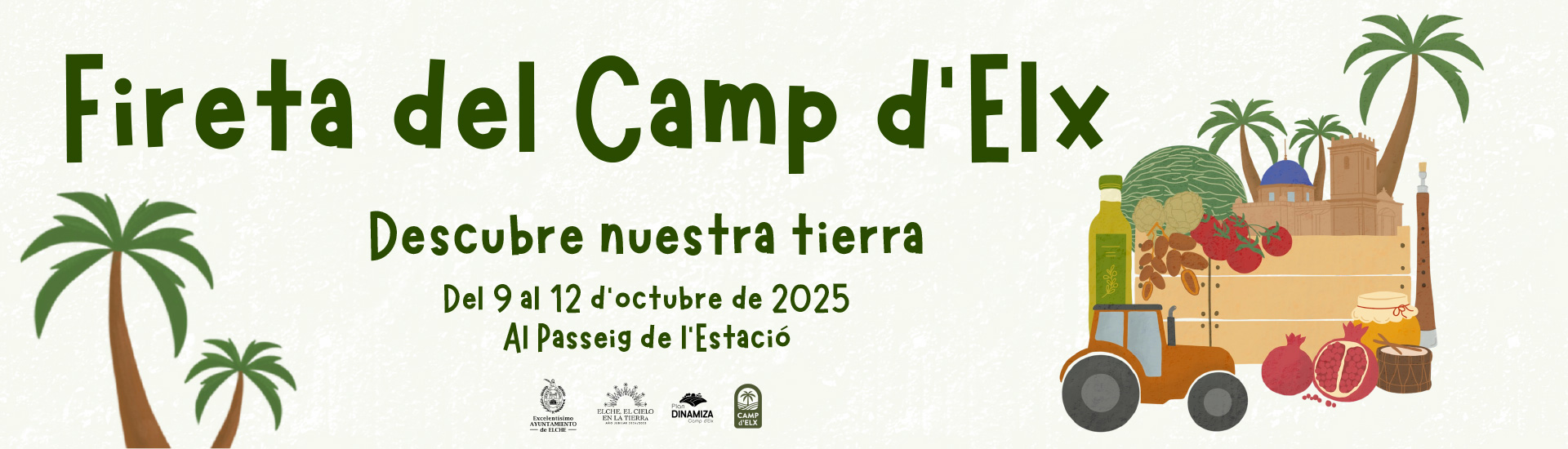 El Ayuntamiento de Elche ha presentado una nueva edición de la Fireta del Camp d’Elx, que se celebrará del 9 al 12 de octubre en el Paseo de la Estación, y que tiene como objetivo dar un importante impulso al sector agrícola local, recuperar y atraer expositores de calidad, y ofrecer un mayor espacio de promoción, degustación y venta de productos de proximidad.