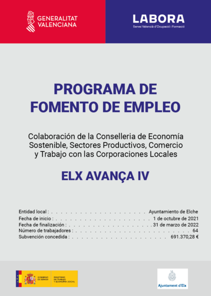 Actuación financiada por LABORA Servicio Valenciano de Empleo y Formación, Ministerio de Trabajo y Economía Social y Ayuntamiento de Elche.
