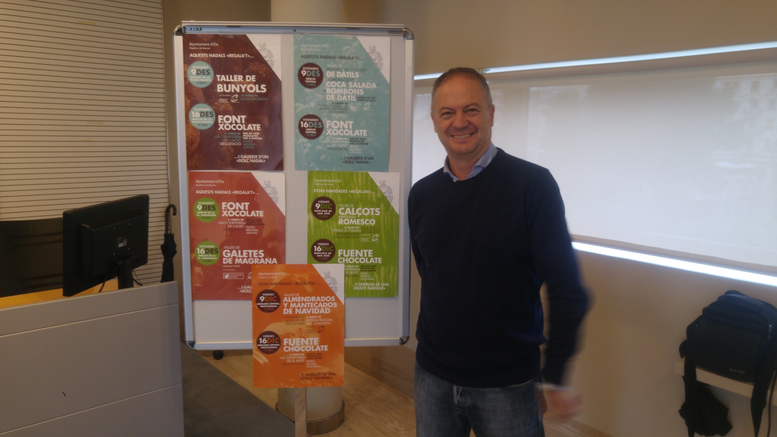 El regidor de Mercats, Carlos Sánchez, ha presentat la campanya de promoció de mercats que es durà en els cinc mercats de la ciutat. El pròxim 9 de desembre s’instal·larà una font de xocolate en el Mercat de la plaça de Barcelona i el 16 de desembre en el mercat de la plaça de Madrid, en el Mercat Central, el Mercat de Sant Josep el Mercat Central Provisional. A mes, els assistents disfrutaran de música en directe.