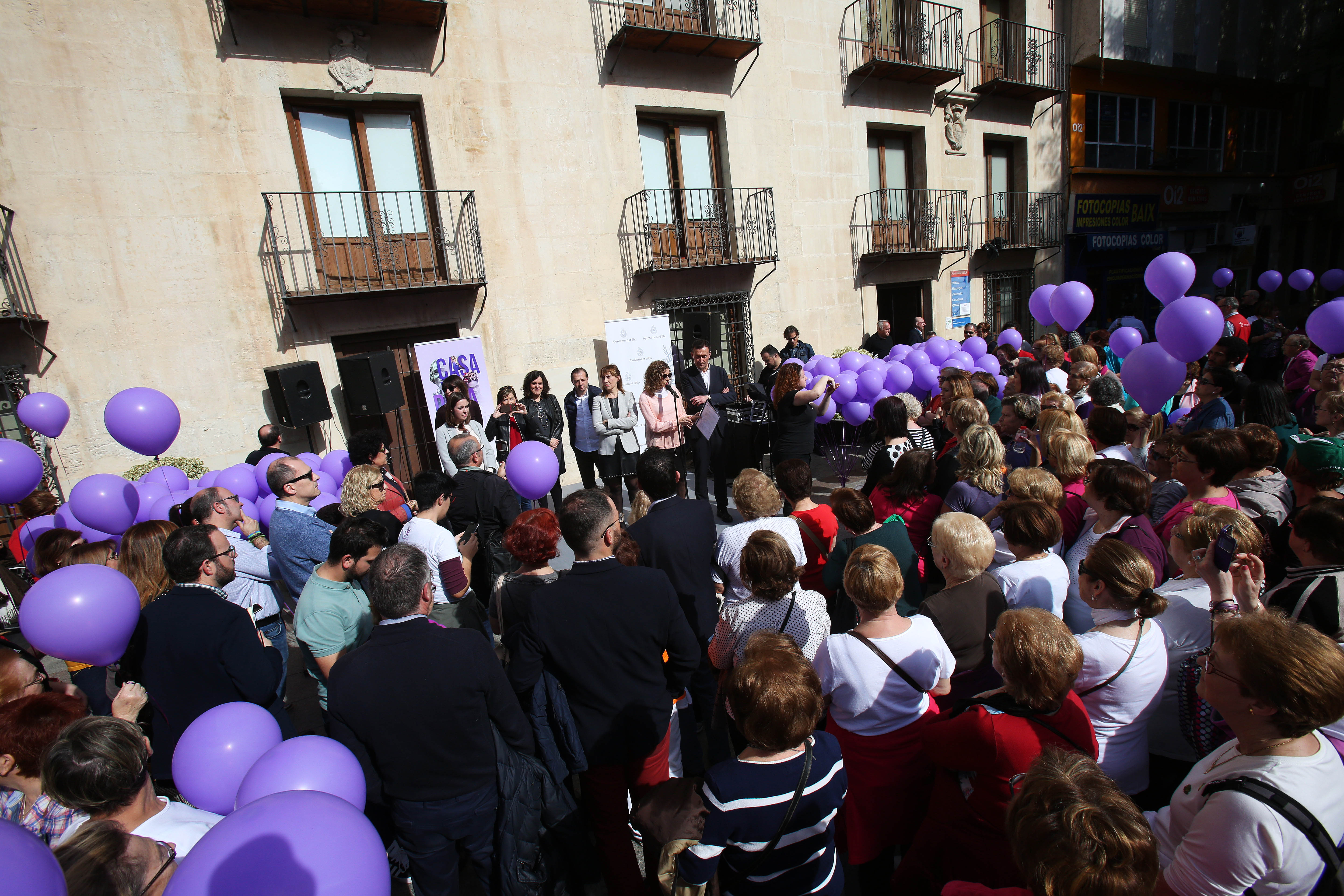 En acabar l’acte se soltaren nombrosos globus de color lila simbolitzant la llibertat de la dona. Així mateix, en la fatxada de l’Ajuntament es col·locà a primera hora del matí un gran cartell amb el lema #IgualtatREAL en senyal de solidaritat.