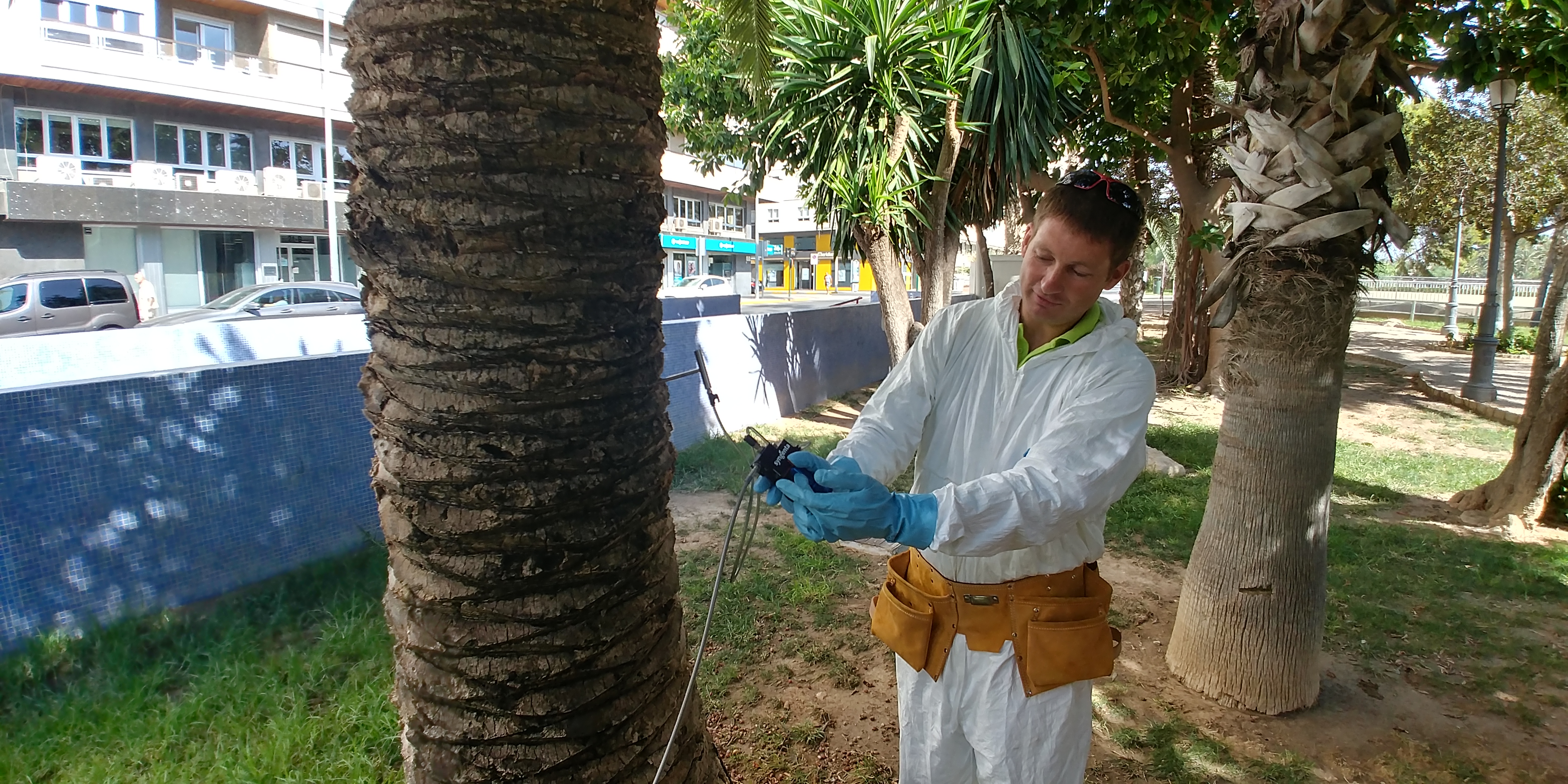 Medi Ambient tracta durant aquest estiu més de 60 palmeres amb aquesta eina, els resultats de la qual demostren que les plantes romanen almenys un any sense ser atacades per l’insecte
