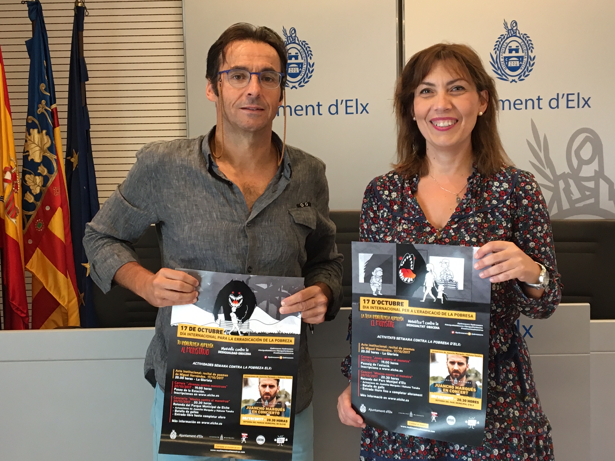 La regidora de Benestar Social, Teresa Maciá, i el tècnic de l’Àrea de Cooperació, Tano González-Espresati, han presentat la campanya “La teua indiferència alimenta el monstre. Mou-te contra la desigualtat obscena” en la qual participa l’Ajuntament d’Elx amb motiu del Dia Internacional per a l’Eradicació de la Pobresa que tindrà lloc el propvinent 17 d’octubre.