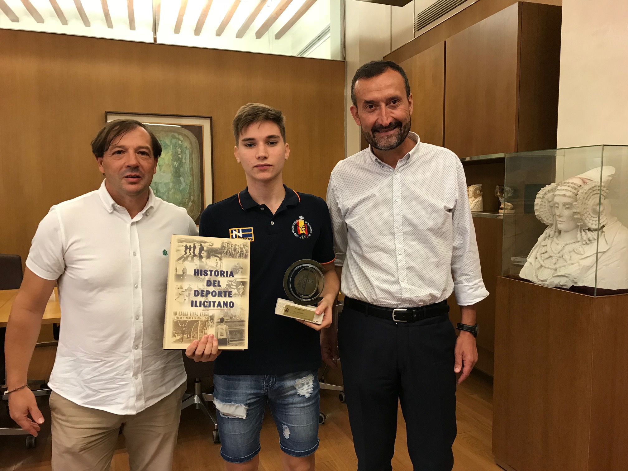 L’alcalde d’Elx, Carlos González, i el regidor d’Esports, Jesús Pareja, han rebut en l’Alcaldia el jove il·licità Hugo Arillo, que al febrer passat es va proclamar campió d’Espanya júnior de taekwondo, i entre els seus pròxims objectius estan els Jocs Olímpics de la Joventut que se celebraran a Buenos Aires a l’octubre.