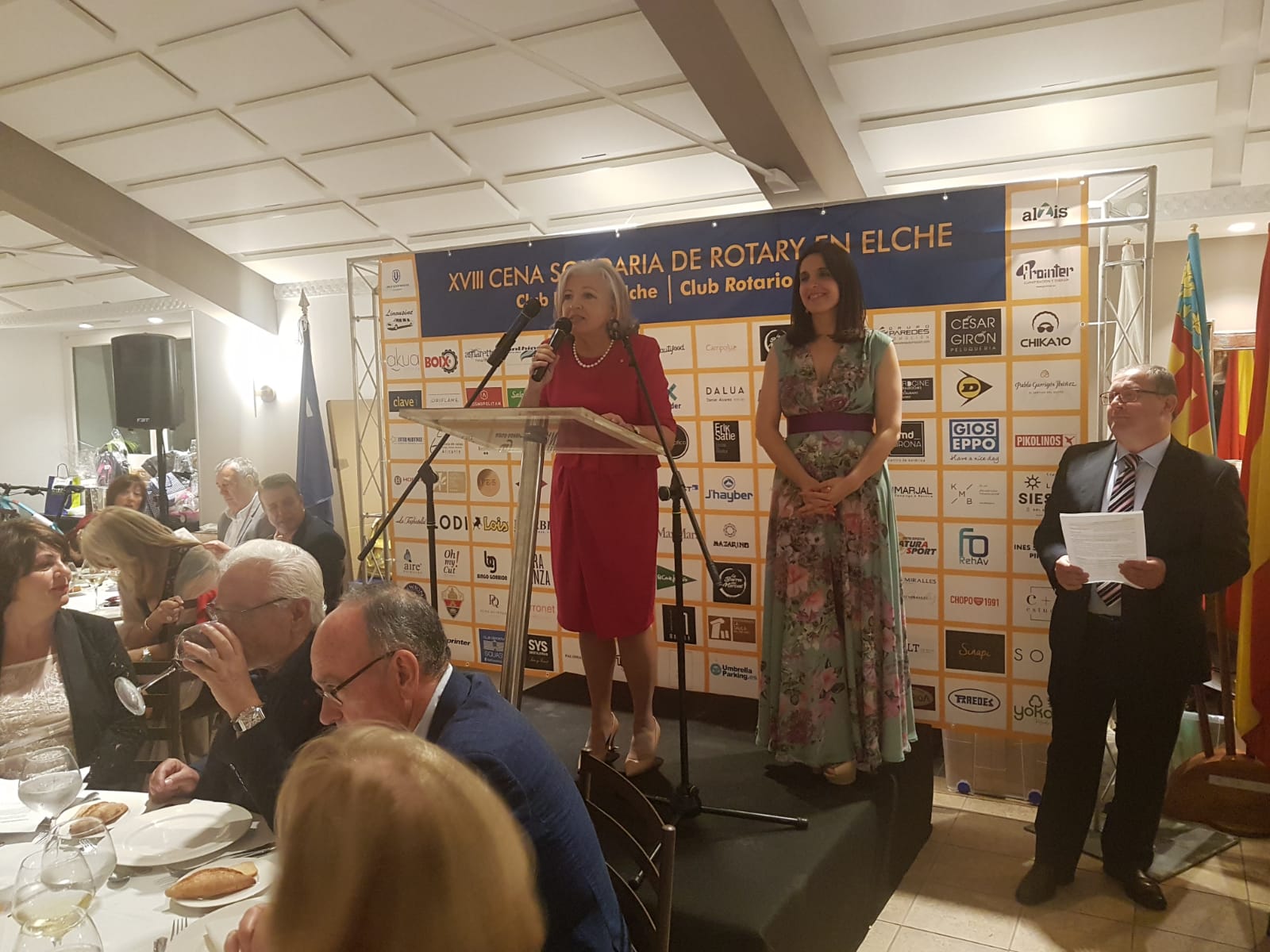Els al voltant de 500 comensals han escoltat amb atenció les paraules del presentador de la vetlada, el periodista Juan Carlos Romero; de la presidenta de la fundació Abraçada de Llum, María José Martínez; de la del Club Rotary Elx, Rosa Agulló Agüero; de la del Club Rotary Elx Illice, Ana Maruenda; del governador de districte rotari, Jesús Martínez; i de l’alcalde.