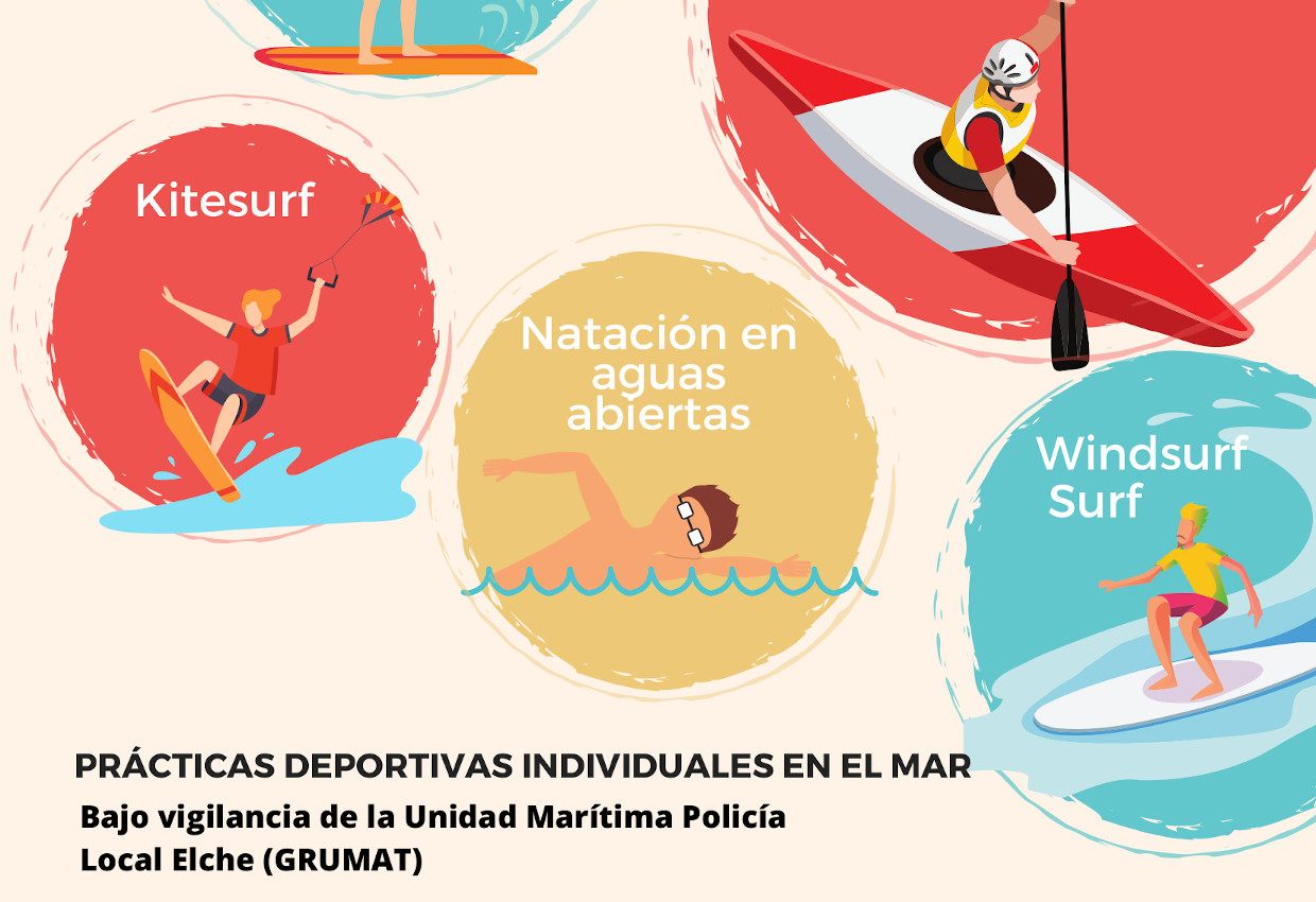 D’aquesta manera, els i les esportistes únicament podran accedir a la mar per a la pràctica esportiva pel punt d’accés controlat pels agents de la Policia Local d’Elx situat a la platja dels Arenals del Sol, en la intersecció de l’avinguda de Sant Bartolomé de Tirajana amb el carrer Real, entre el lloc principal de socorrisme i la torre guaita.