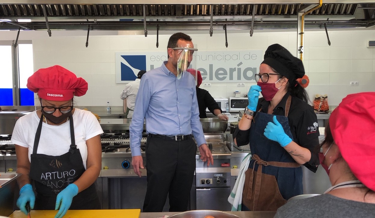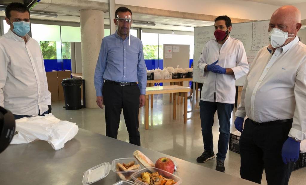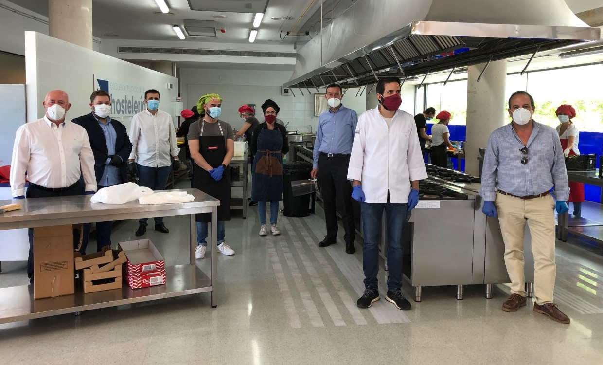 L’Escola Municipal d’Hostaleria d’Elx s’ha implicat en el projecte Alacant Gastronòmica Solidària amb l’objectiu d’elaborar fins a 200 menús diaris per a cobrir les necessitats alimentoses de famílies afectades per la crisi del coronavirus, segons ha explicat aquest matí l’alcalde d’Elx, Carlos González, qui ha visitat el centre acompanyat pels regidors de Promoció Econòmica, Carles Molina; i Drets Socials, Mariano Valera; el president de la Confederació d’Empreses d’Elx i Comarca (Cedelco), Joaquín Pérez0; i el president i coordinador del projecte, Carlos Baño.