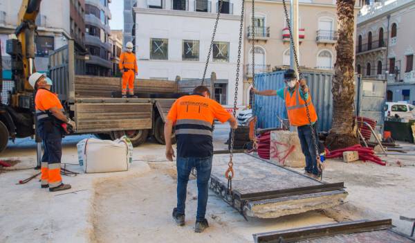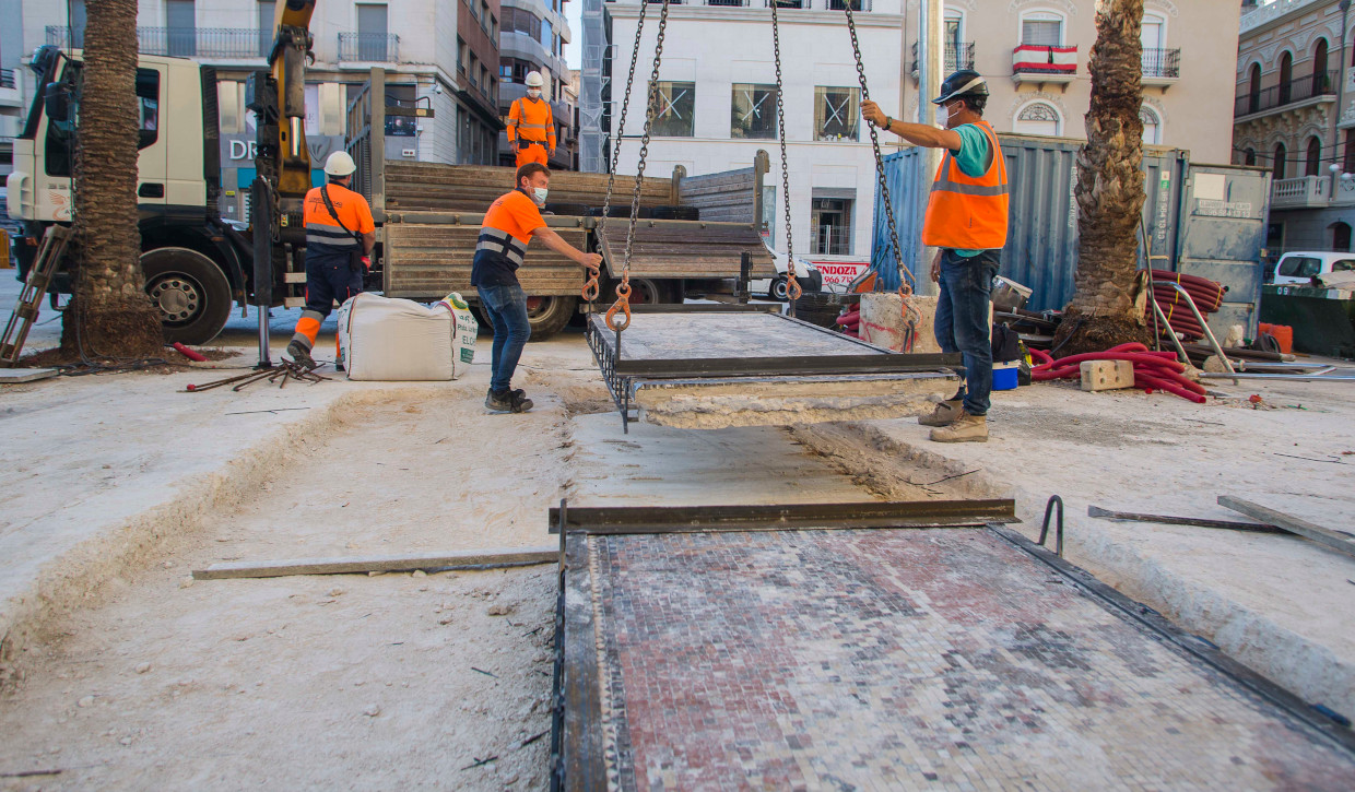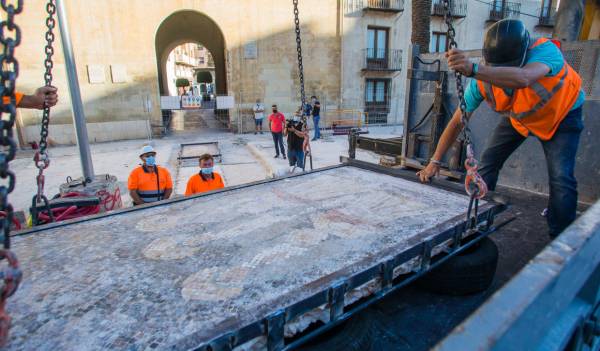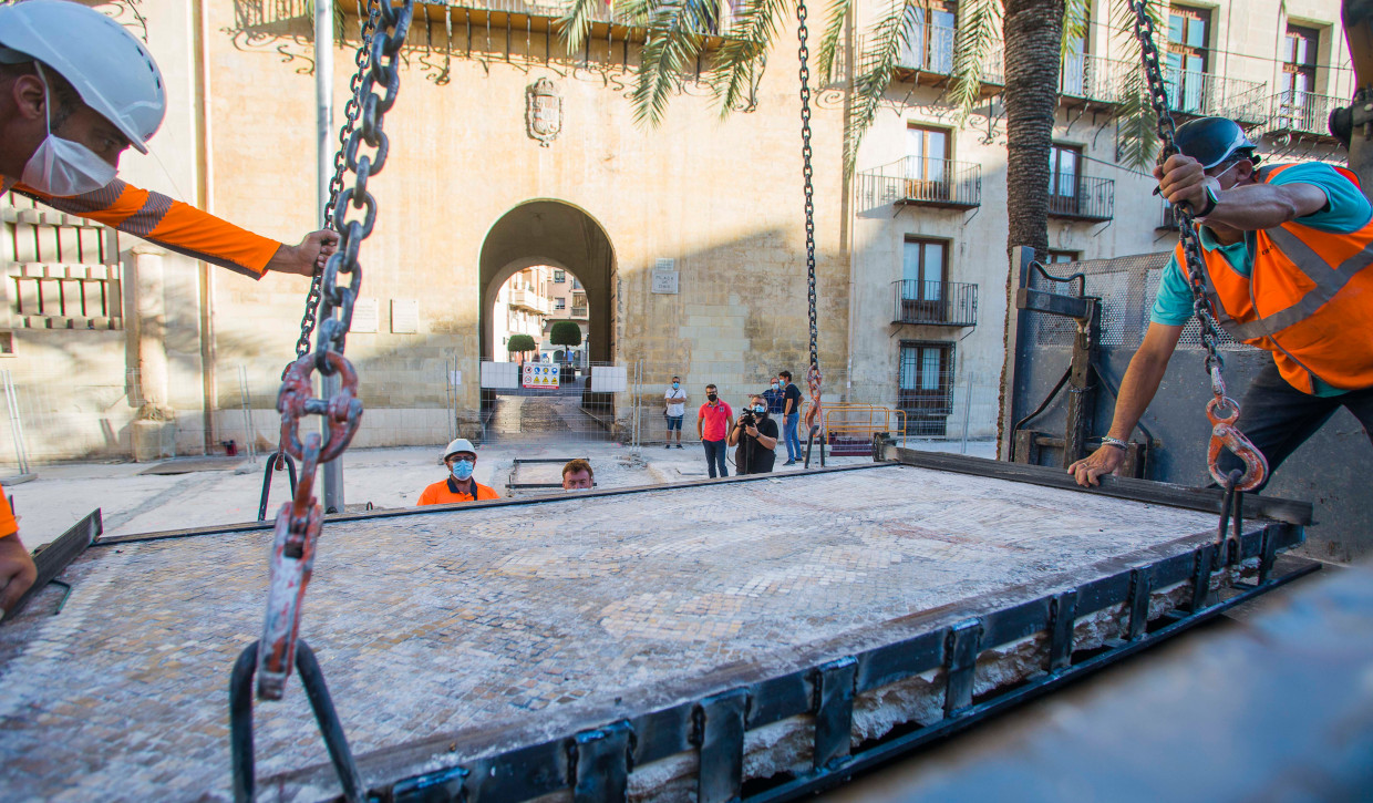 L’Ajuntament d’Elx ha finalitzat la retirada dels tres mosaics del Misteri d’Elx de la plaça de Baix. Les tres peces, inspirades en esbossos de l’obra de Sixto Marco, s’han traslladat al magatzem municipal mentre es busca la seua nova ubicació. La regidora d’Urbanisme, Ana Arabid, assegura que “la idea és col·locar els mosaics a la porta principal de Santa Maria o al llarg del recorregut que realitza la Comitiva del Misteri. Pensem que el lloc idoni és l’entorn de la basílica”.