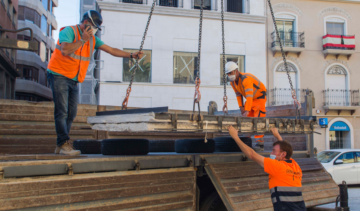 L’arquitecte municipal i redactor del projecte, Julio Sagasta, ha informat que “el primer a retirar-se va ser el que es va instal·lar més recentment perquè ja comptava amb una armadura metàl·lica. Amb els dos restants hem hagut de tallar amb un fil de diamant per a separar-los del sòl i ja afegir l’armadura perquè en traure’ls no es partiren”. Posteriorment, els mosaics s’han traslladat fins al magatzem municipal en un camió condicionat per al transport amb elements amortidors.