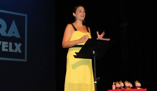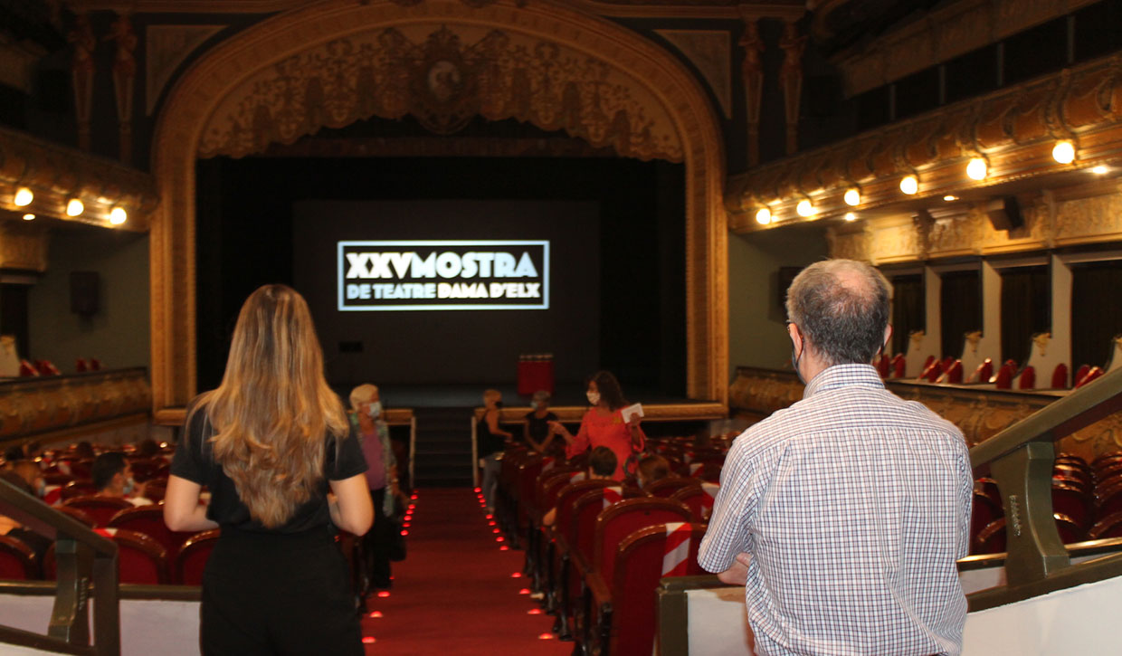 amb un duel d’improvisacions que va congregar prop de dos-cents espectadors en el Gran Teatre. La XXV edició –marcada pel rigorós compliment de les mesures de seguretat sanitàries– ha brillat amb especial intensitat per ser la del centenari del coliseu il·licità i, sobretot, la del quart de segle d’un esdeveniment amb suport de les regidories de Cultura i Joventut, i que va nàixer en 1996 a iniciativa d’Atrote Teatre per a més endavant, en el 2000, prendre el relleu organitzatiu La Plataforma de Teatre Amateur d’Elx, entitat d’enhorabona en complir dues dècades. La responsable de Cultura i Joventut de l’Ajuntament d’Elx, Marga Antón, i la directora de la Plataforma, Consuelo Pérez, van clausurar la Mostra número 25 amb les seues intervencions en les quals, a més, van ser reconegudes les organitzacions que encapçalen per la seua intensa dedicació a constituir una edició “en un complicat 2020”, segons Antón; especialment per al sector cultural, el fruit del qual, durant el confinament, va ser “el bàlsam més eficaç per al dolor de les absències”. Antón, que va lamentar les infaustes circumstàncies que van obligar a paralitzar la cultura en el municipi, va declarar sentir-se satisfeta “perquè la reobertura del Gran Teatre haja sigut de la mà de la Plataforma”, tot agraint a aquesta i a les agrupacions teatrals adherides “l’enorme esforç per continuar fent una cultura segura i donar-ho tot en la Mostra davant els ulls emocionats de la platea i els seus afectuosos aplaudiments, que són el principal aliment dels artistes vocacionals com vosaltres, compensant les moltes hores d’assajos”.