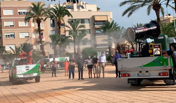 El nou equip de fumigació s’ha presentat als jardins de la Torre del Gall de la Foia amb la presència de l’alcalde d’Elx, Carlos González; la regidora de Sanitat, Mariola Galiana, i el regidor de Pedanies, Vicente Alberola; el gerent de l’empresa CTL, Joaquín Bernabeú, i l’alcaldessa pedània, Alicia Molero