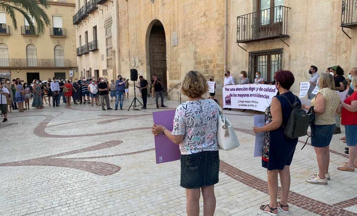 Membres de l’equip de Govern de l’Ajuntament d’Elx, entre els quals es trobaven la regidora de Política de Majors, Puri Vives, i l’edil de Drets Socials, Mariano Valera, van assistir ahir tard a la concentració convocada pels familiars dels residents del geriàtric d’Altabix.