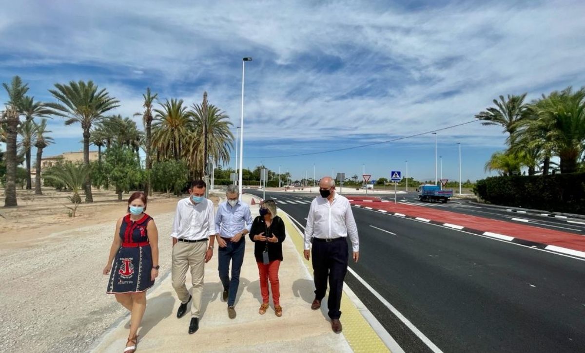 L’alcalde d’Elx, Carlos González, i les regidores d’Urbanisme, Ana Arabid, i de Mobilitat, Esther Díez, visiten junt al conseller d’Obres Públiques, i l’alcaldessa de Santa Pola, María Loreto, els treballs d’ampliació d’aquesta via
