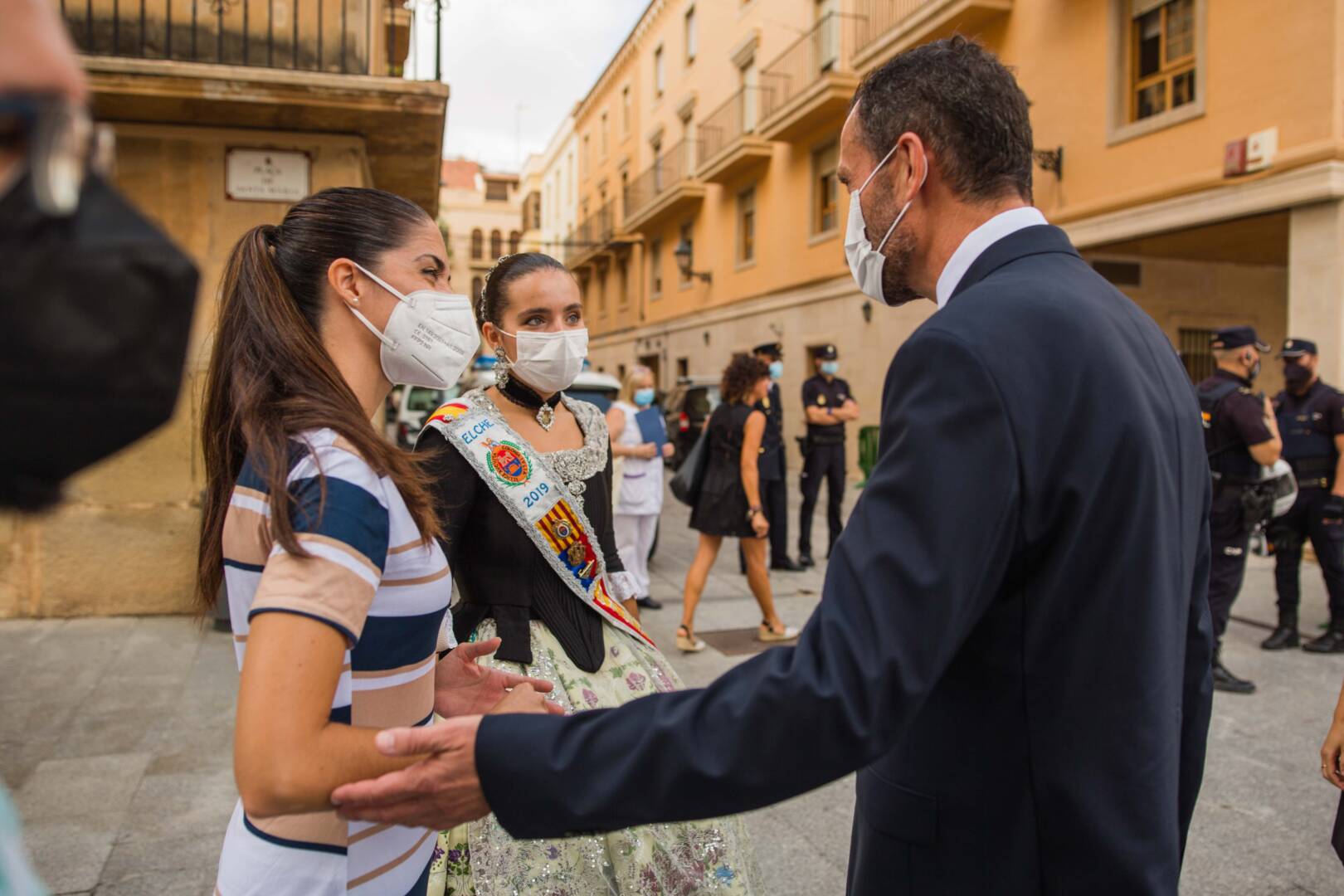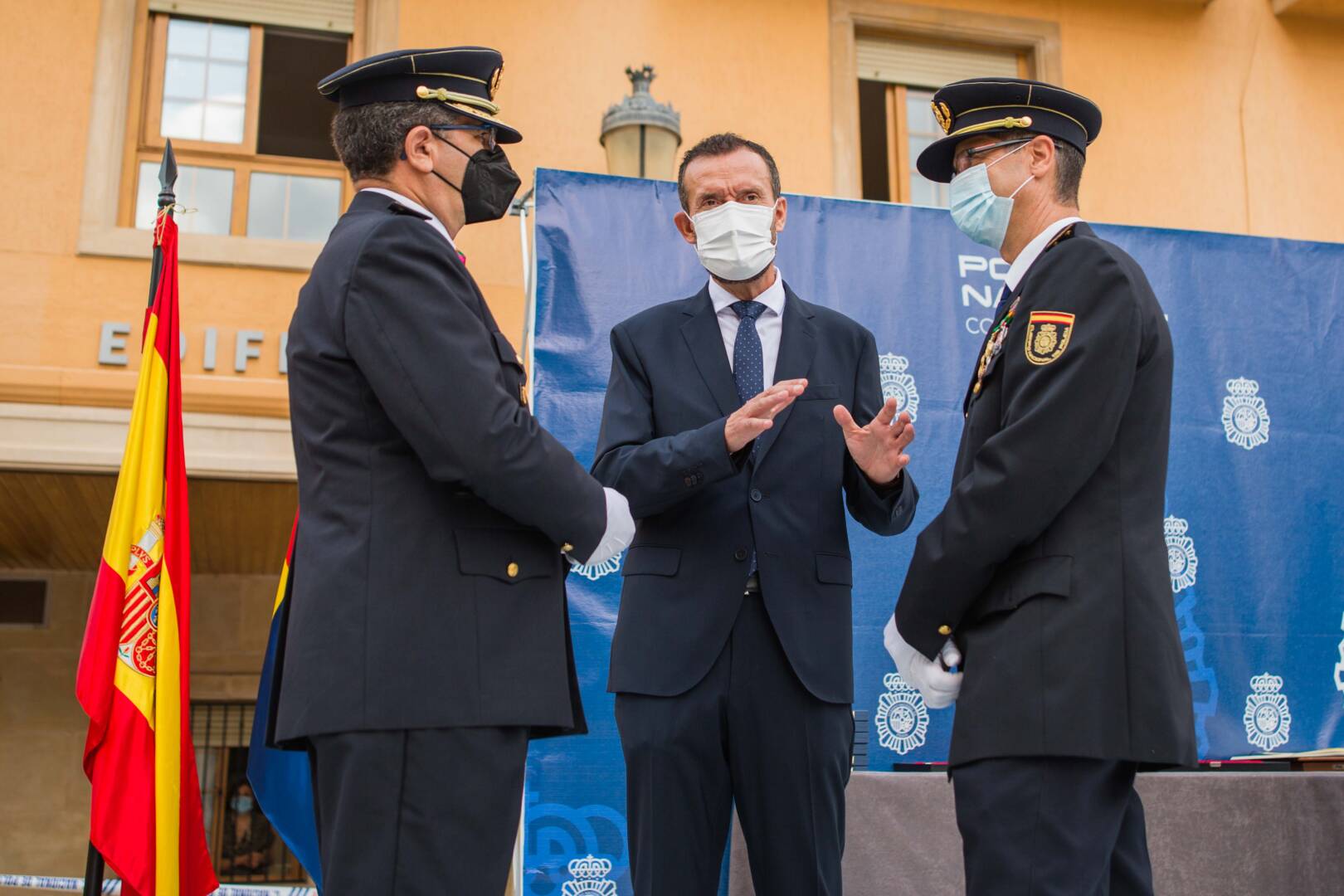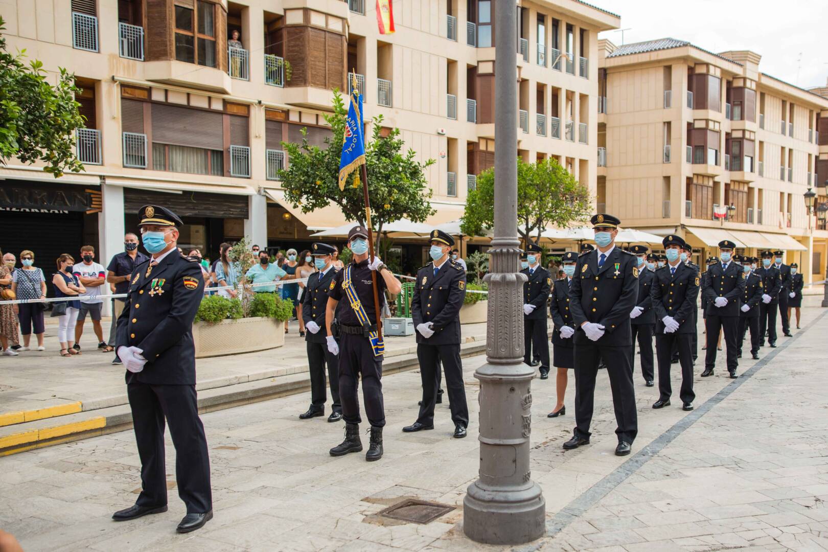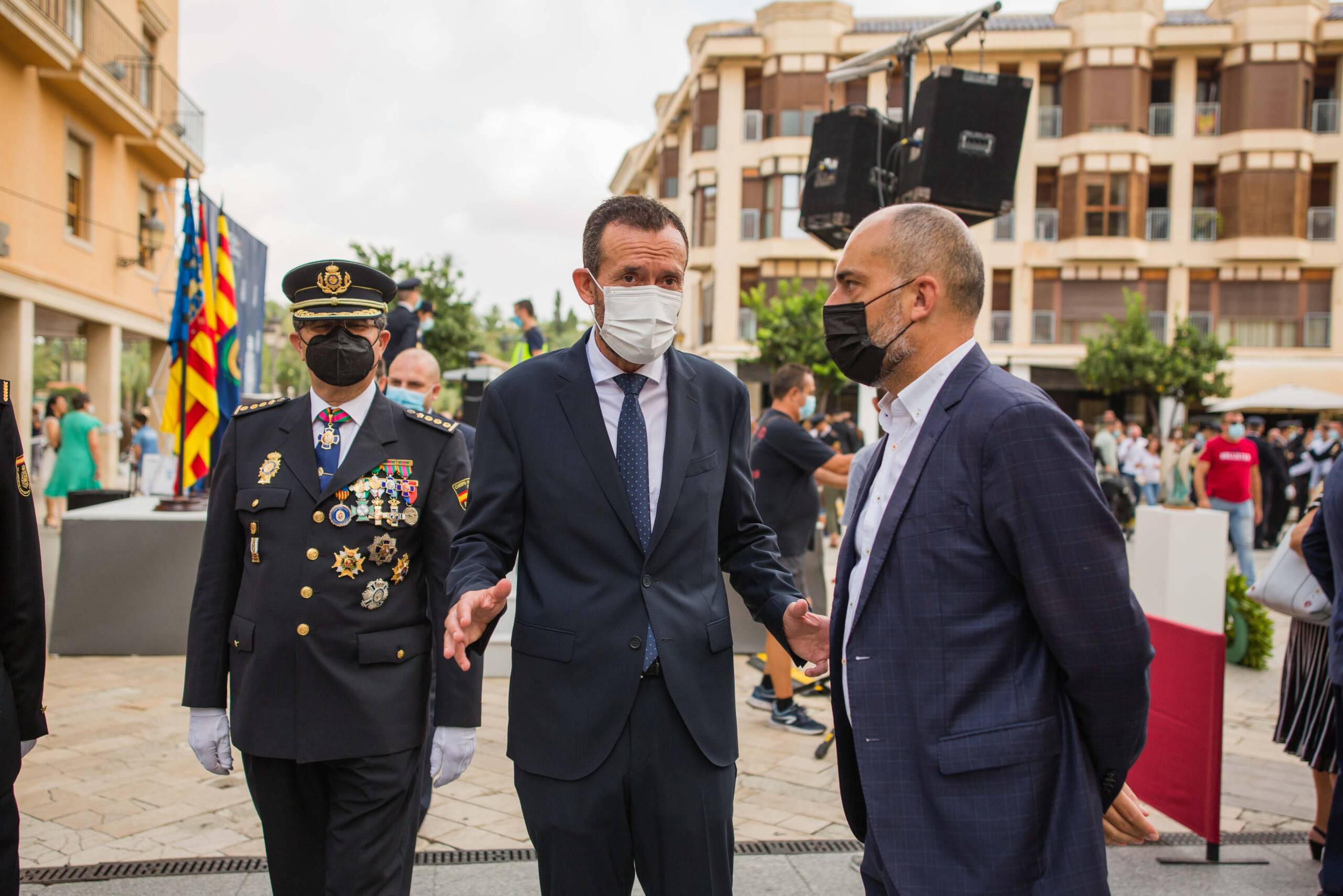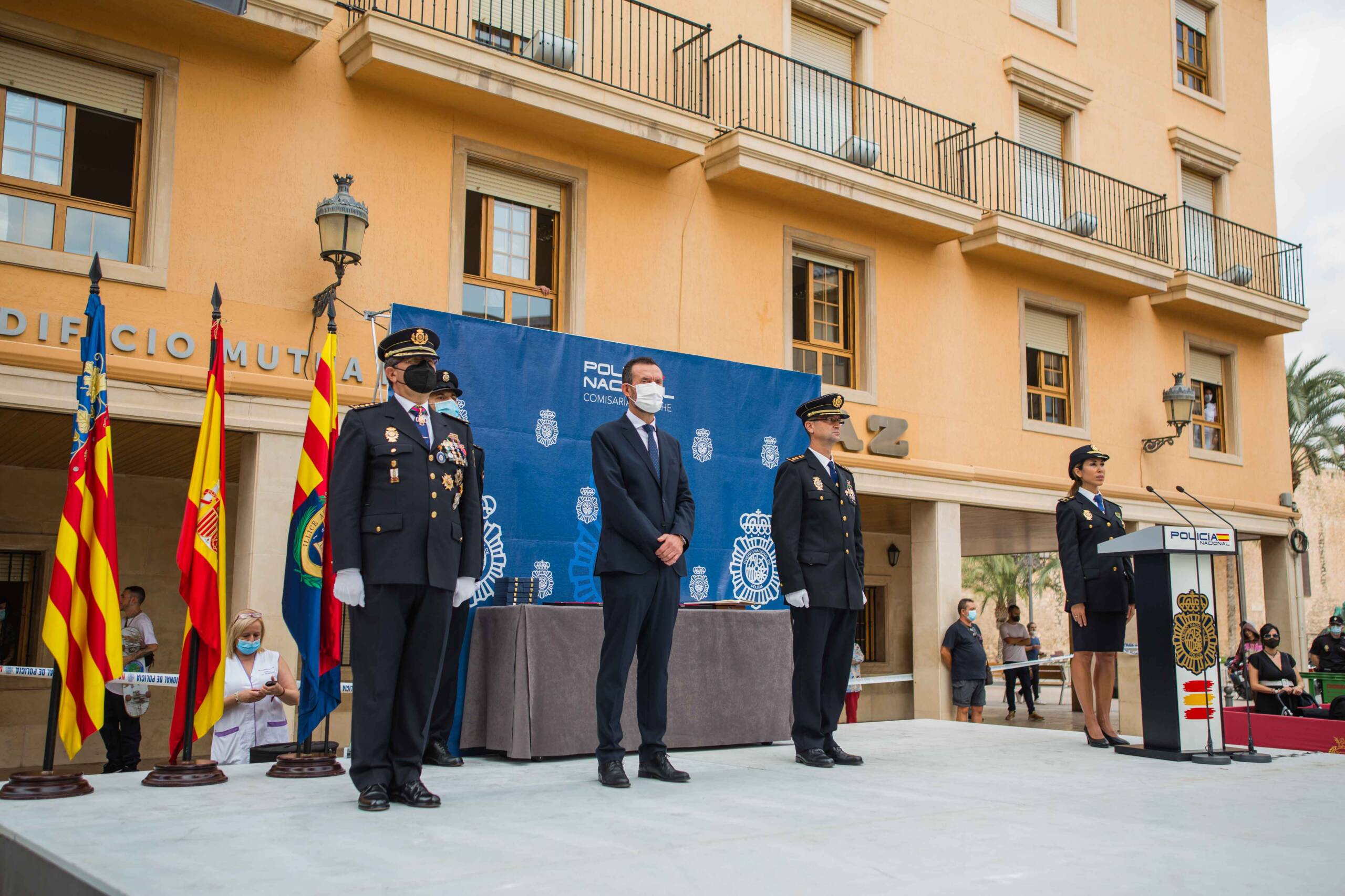 La plaça del Congrés Eucarístic ha sigut escenari aquest matí de la celebració del patró del Cos Nacional de Policia (CNP), Sants Àngels Custodis. L’esdeveniment, presidit per l’alcalde d’Elx, Carlos González, i el comissari cap de la Comissaria de la Policia Nacional a la ciutat, Pedro Montore, acompanyats pel regidor de Seguretat Ciutadana, Ramón Abad, i el cap de la Policia Local d’Elx, César Zaragoza, ha despertat l’interés de la ciutadania i ha congregat a l’espai públic a nombroses autoritats civils –entre aquestes, membres de l’Equip de Govern i de la Corporació Municipal–, policials i castrenses en un acte que no se celebrava des de 2019 per motius pandèmics.