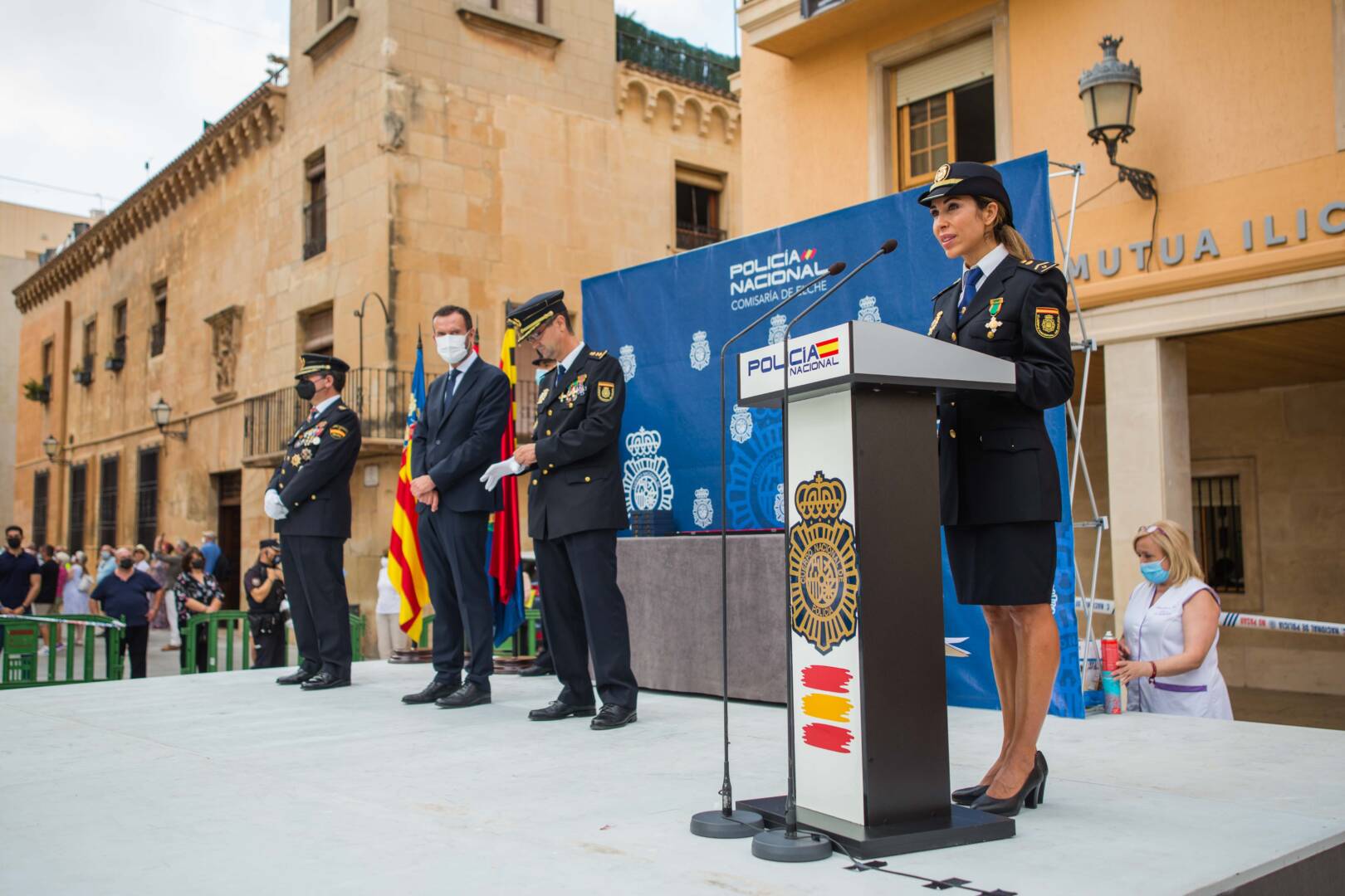“Espanya necessita institucions sòlides i líder, i en la festivitat que hui commemorem reivindiquem el que som i el volem ser: guardians de l’ordenament jurídic”, ha dit Montore en el seu primer discurs com a representant de la Comissaria il·licitana. “Segons les dades objectives i la percepció subjectiva de la població, Elx és una ciutat segura i es confirma com una de les localitats amb els índexs de criminalitat més baixos entre les més habitades d’Espanya”, ha expressat; tot això, gràcies a les màximes del Cos: “servir, ser útils i proporcionar seguretat perquè tot funcione, perquè els il·licitans confien en la Policia Nacional”.