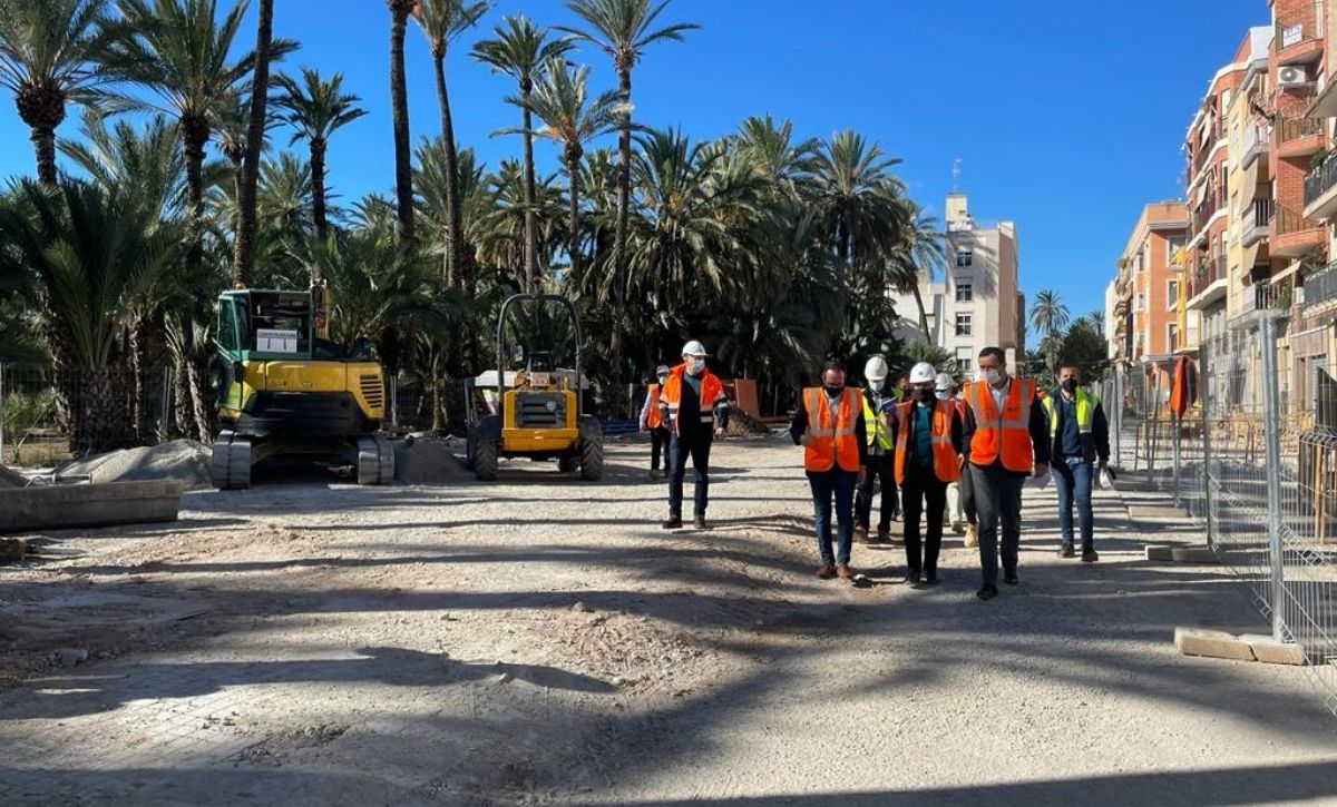 L’alcalde, Carlos González, l’edil de Cicle de l’Aigua, Héctor Díez, i el gerent d’Aigües d’Elx, Javier Prieto, visiten les obres, que es preveu que concloguen a la fi de novembre amb una inversió de més de 395.000 euros