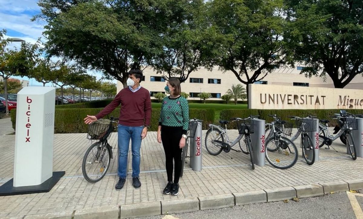 L’Ajuntament d’Elx i la Universitat Miguel Hernández d’Elx (UMHE) continuen treballant per a promoure la mobilitat sostenible i per a reduir la contaminació de l’aire al municipi. En concret, la regidora de Mobilitat, Esther Díez, i el vicerector d’Infraestructures de la UMHE, Pedro Vicente, han presentat aquest matí l’estació número 48 que s’ha instal·lat al costat de l’edifici Rectorat de la universitat. Segons ha explicat l’edil, “es tracta del tercer punt d’estacionament que dona servei al conjunt de campus universitari” i ha recordat el Pla de Mobilitat que s’està desenvolupant juntament amb la universitat perquè les estratègies de foment de la mobilitat estiguen coordinades per ambdues institucions.