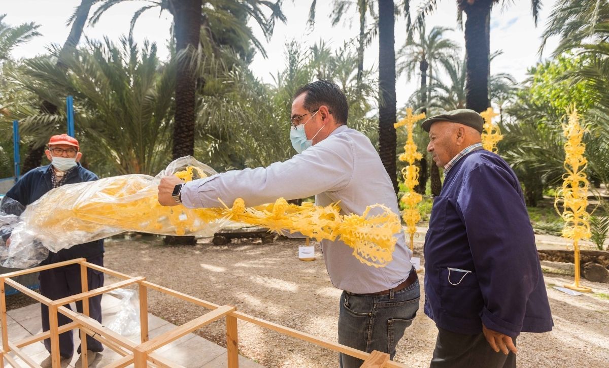 La revisió i la comprovació dels acabats d’aquests rams i palmes ha tingut lloc en l’hort de Sant Plàcid, seu del Museu del Palmerar, per part de l’alcalde d’Elx, Carlos González, les regidores de Festes i d’Urbanisme, Mariola Galiana i Ana Arabid, i els artesans Francisco Serrano i Paqui Serrano, de la família Serrano Valero, que obren art amb les palmes blanques que es veuran als carrers el pròxim diumenge, quan es rememora l’entrada de Crist a Jerusalem. Una processó que, com la Setmana Santa, degué suspendre’s en 2020 i en 2021 per la pandèmia