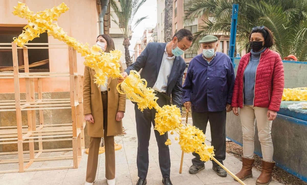 L’alcalde, Carlos González, les edils Mariola Galiana i Ana Arabid i els artesans Francisco i Paqui Serrano presenten aquests elements de la tradició il·licitana, que s’envien també als presidents del Govern i de la Generalitat, a l’alcalde de Jaca i als bisbes d’Oriola-Alacant i de Solsona